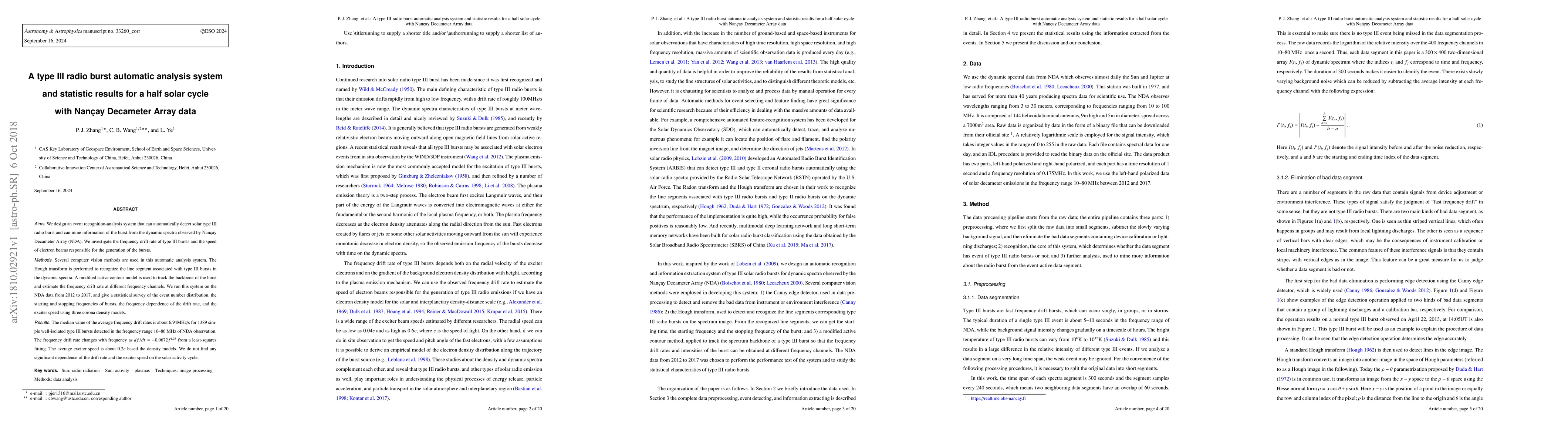 This paper presents an automatic analysis system for detecting solar type III radio bursts using the Nancay Decameter Array data. The system employs computer vision techniques and statistical surveys reveal a median frequency drift rate of 6.94 MHz/s and an average exciter speed of 0.2c, with no significant solar cycle dependency.