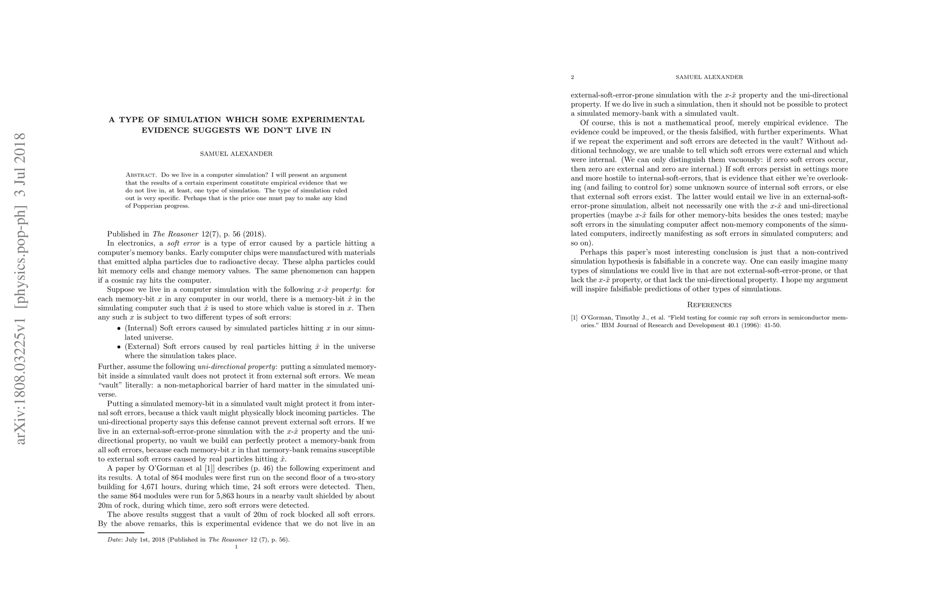This paper argues that a type of simulation, as suggested by some experimental evidence, can be ruled out based on empirical results. It presents a specific simulation scenario that is no longer supported by the data.