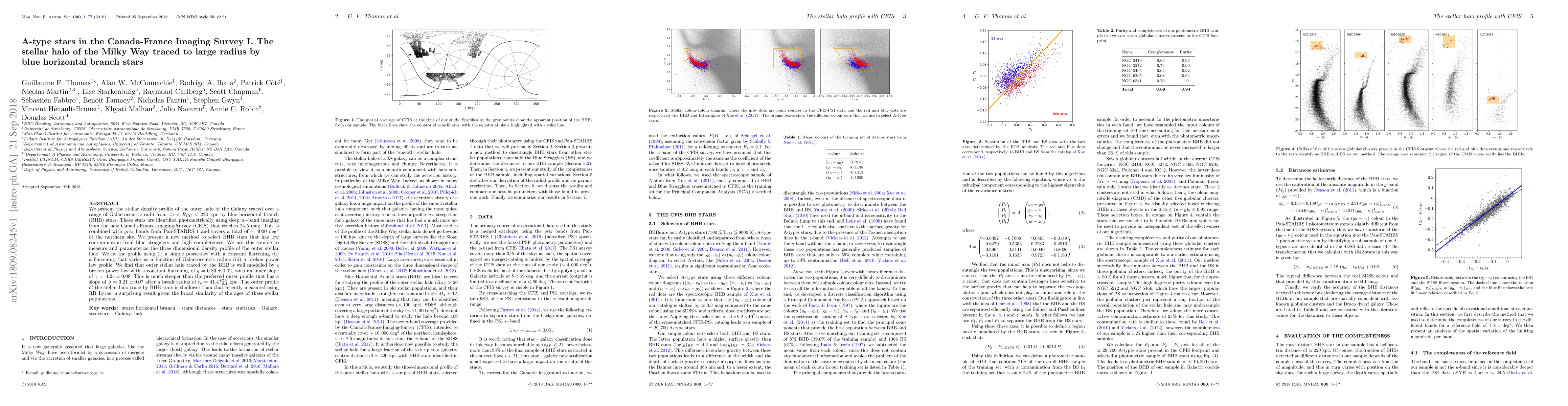 This paper uses blue horizontal branch stars identified from the Canada-France Imaging Survey to trace the stellar density profile of the Milky Way's outer halo out to 220 kpc. The study finds a broken power law model best fits the density profile, with a steep inner slope and a shallower outer slope after a break radius of 41.4 kpc.