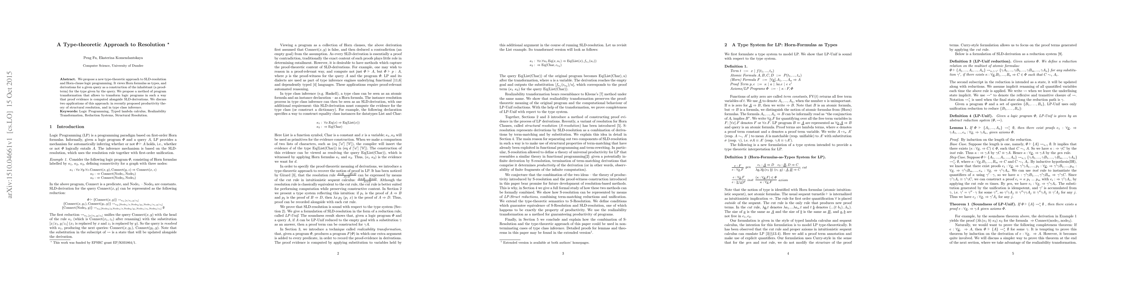 We propose a new type-theoretic approach to SLD-resolution and Horn-clause logic programming. It views Horn formulas as types, and derivations for a given query as a construction of the inhabitant (a proof-term) for the type given by the query. We propose a method of program transformation that allows to transform logic programs in such a way that proof evidence is computed alongside SLD-derivations. We discuss two applications of this approach: in recently proposed productivity theory of structural resolution, and in type class inference.