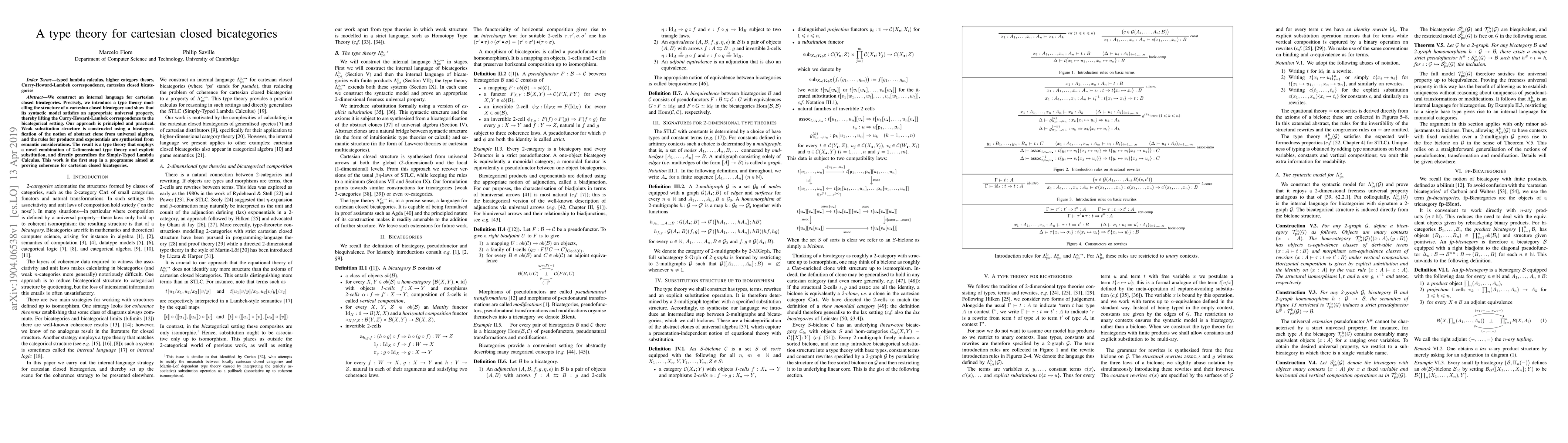 We construct an internal language for cartesian closed bicategories. Precisely, we introduce a type theory modelling the structure of a cartesian closed bicategory and show that its syntactic model satisfies an appropriate universal property, thereby lifting the Curry-Howard-Lambek correspondence to the bicategorical setting. Our approach is principled and practical. Weak substitution structure is constructed using a bicategorification of the notion of abstract clone from universal algebra, and the rules for products and exponentials are synthesised from semantic considerations. The result is a type theory that employs a novel combination of 2-dimensional type theory and explicit substitution, and directly generalises the Simply-Typed Lambda Calculus. This work is the first step in a programme aimed at proving coherence for cartesian closed bicategories.