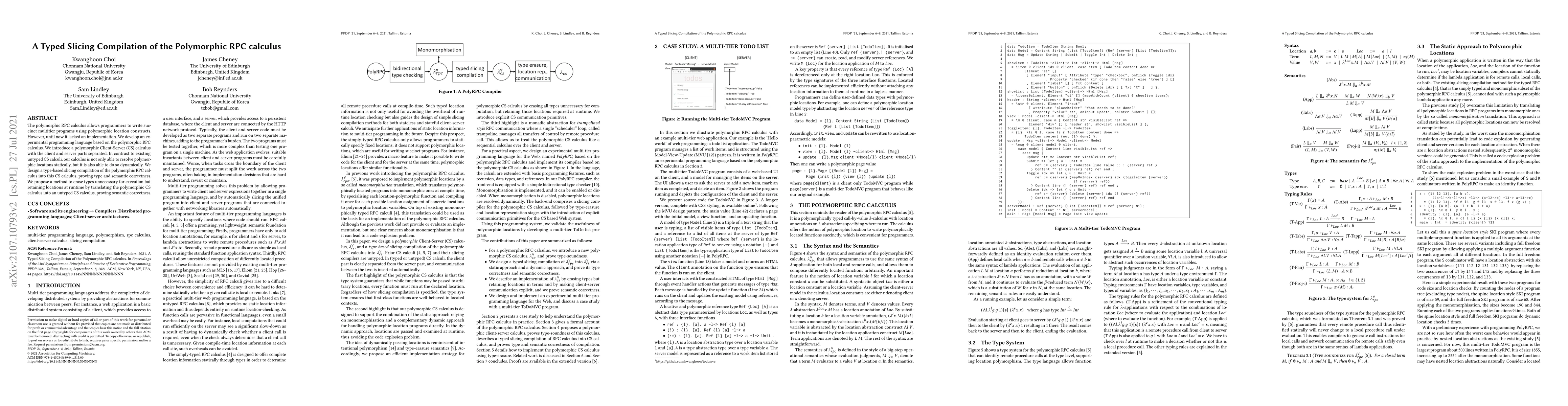 The paper introduces a type-based slicing compilation method and a method for erasing unnecessary types while preserving location information at runtime, advancing the state of polymorphic RPC calculus implementations.