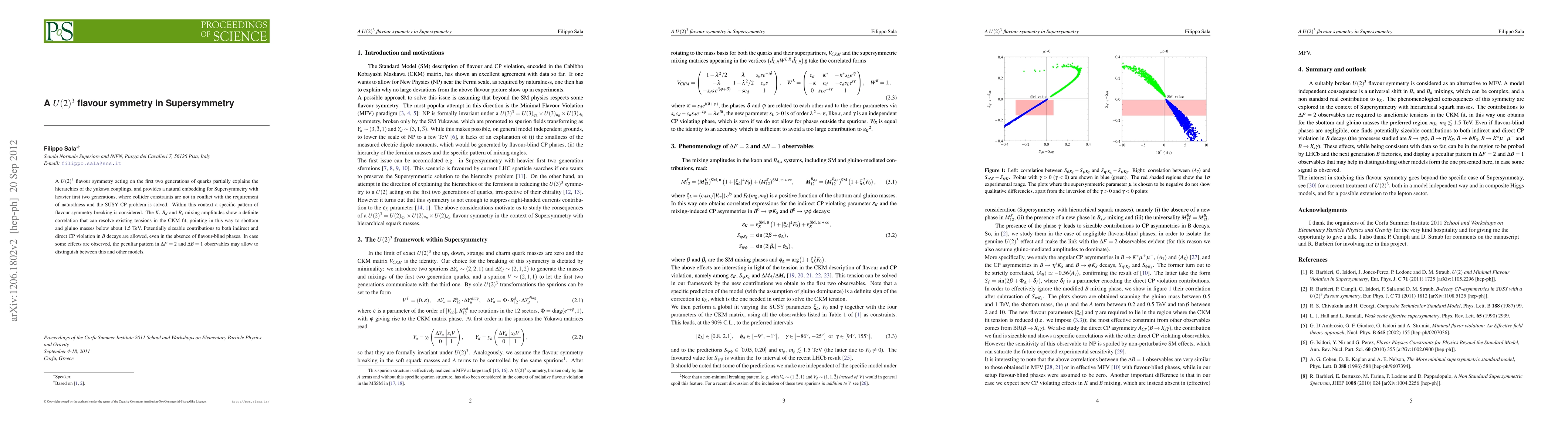 This paper explores a U(2)^3 flavour symmetry for the first two quark generations, explaining Yukawa hierarchies and embedding SUSY with heavier first generations. It suggests a specific symmetry breaking pattern that resolves tensions in the CKM fit and predicts sbottom and gluino masses below 1.5 TeV, while allowing for sizeable CP violations in B decays.