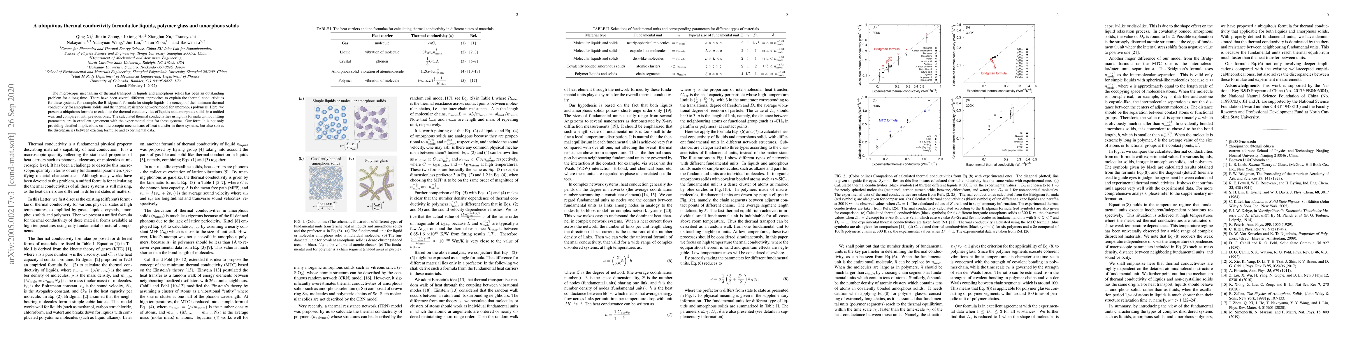 This paper introduces a unified formula to explain thermal conductivity in liquids and amorphous solids, achieving excellent agreement with experimental data without fitting parameters, thereby resolving discrepancies in existing models. The formula offers insights into the microscopic mechanisms of heat transfer in these materials.