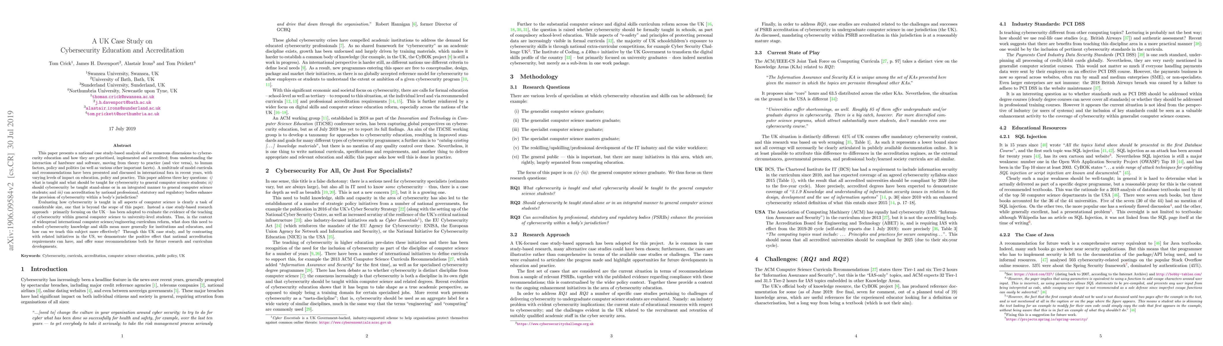 This UK case study examines the teaching and accreditation of cybersecurity within general computer science curricula, addressing what should be taught, whether it should be standalone or integrated, and the role of national accreditation in enhancing cybersecurity education. The study highlights the positive impact of national accreditation and offers recommendations for future curriculum developments.