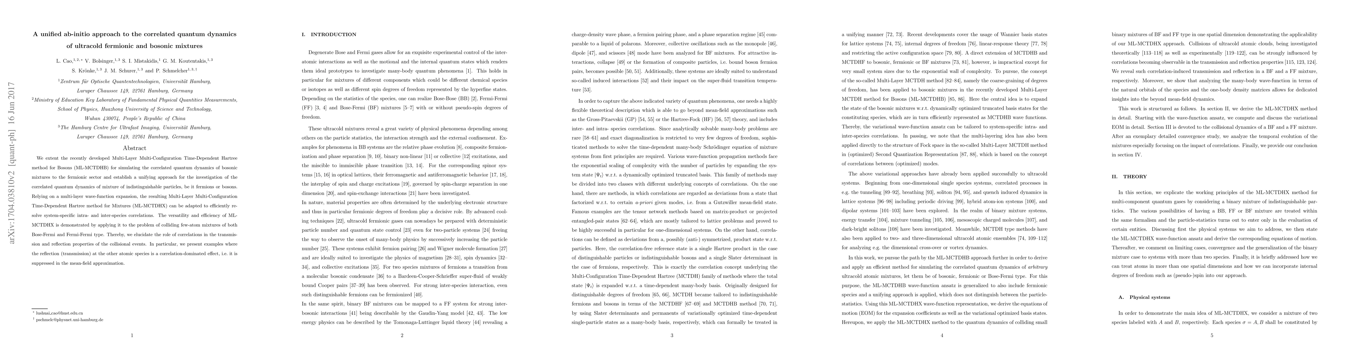 This paper introduces a unified approach to simulate correlated quantum dynamics of fermionic and bosonic mixtures using a new method called Multi-Layer Multi-Configuration Time-Dependent Hartree for Mixtures (ML-MCTDHX). It demonstrates the role of correlations in transmission and reflection properties of collisional events.