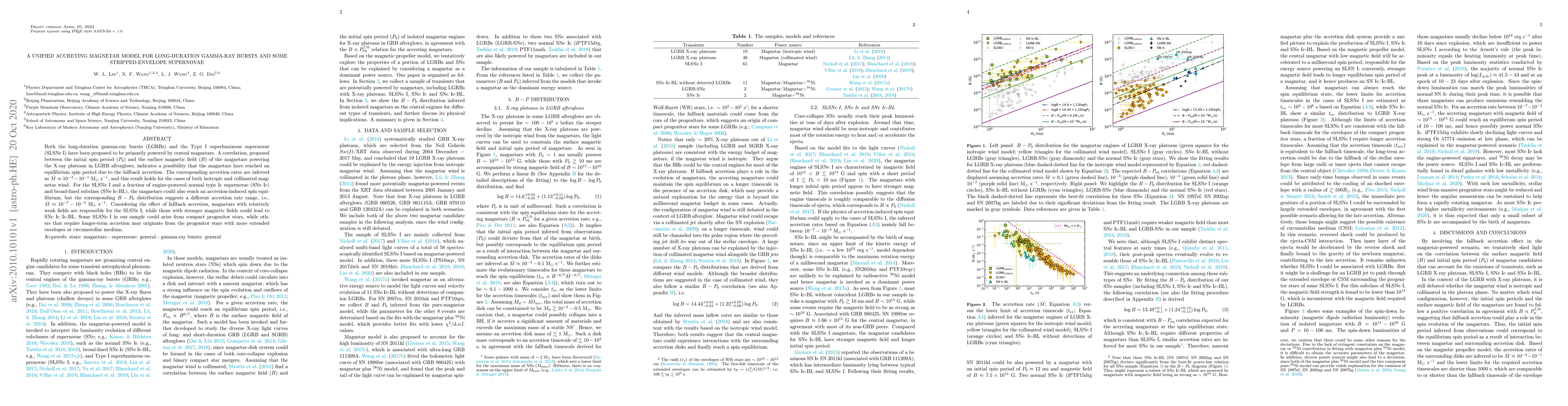 A unified model suggests magnetars power both long-duration gamma-ray bursts and some stripped-envelope supernovae through accretion-induced spin equilibrium, with varying accretion rates depending on magnetic field strength.