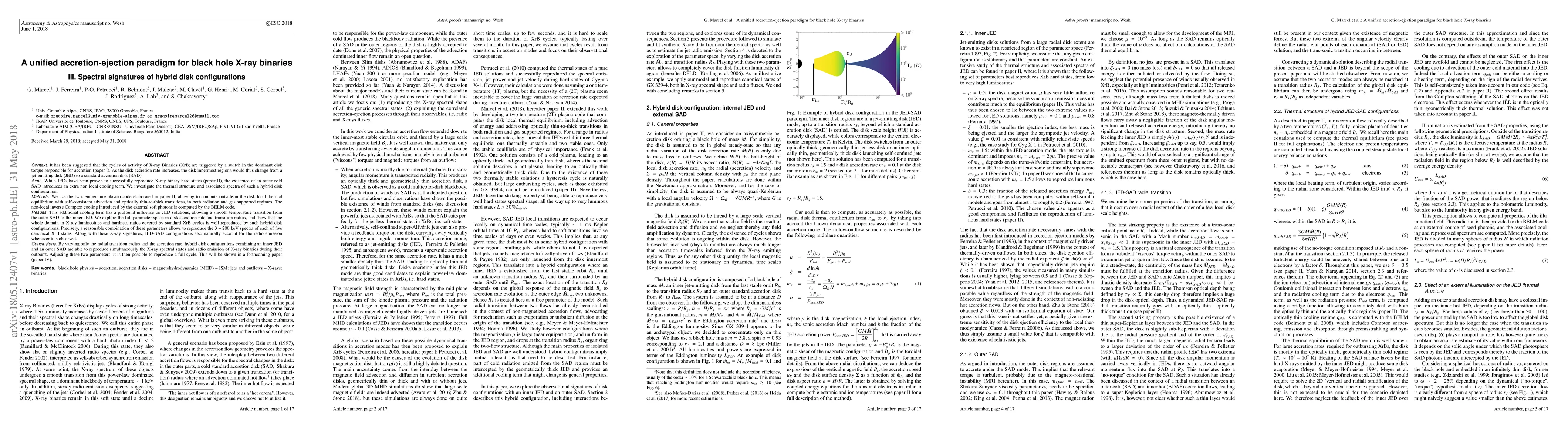 Research reveals that a hybrid disk configuration combining an inner jet-emitting disk with an outer standard accretion disk can reproduce the spectral signatures of black hole X-ray binaries, accounting for both X-ray and radio emission during outbursts.