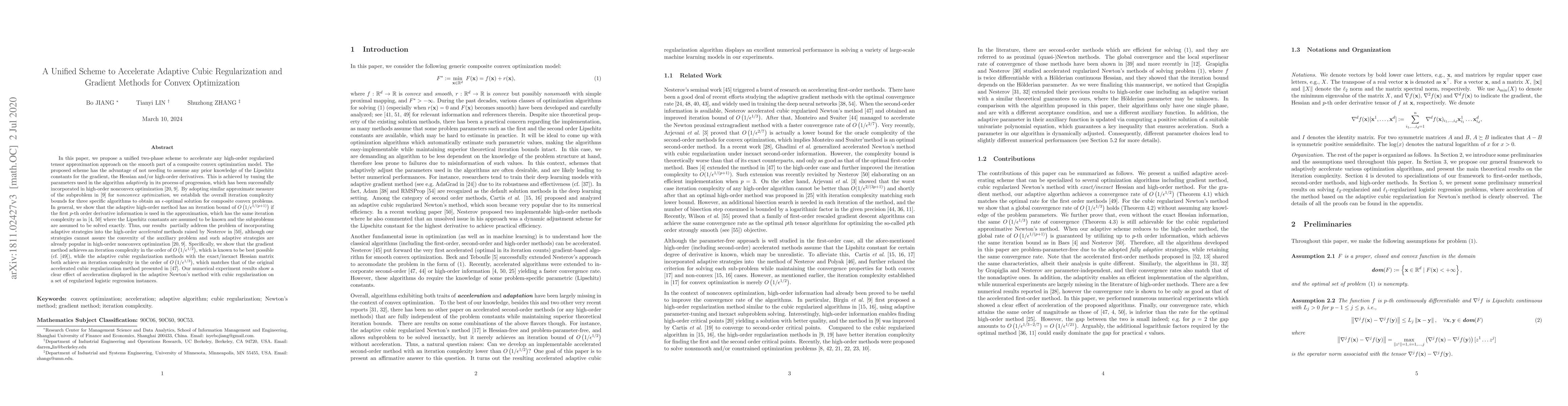 This paper proposes a unified adaptive tensor approximation scheme to accelerate composite convex optimization without requiring prior knowledge of Lipschitz constants. The adaptive method achieves similar iteration complexity to nonadaptive versions, demonstrating effective acceleration in numerical experiments on regularized logistic regression.