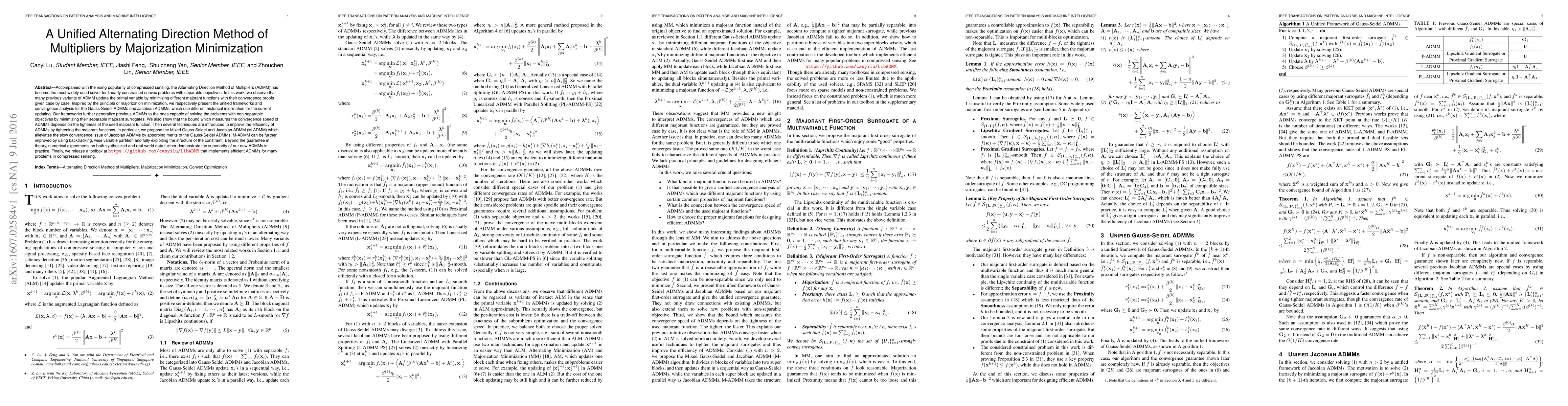 Accompanied with the rising popularity of compressed sensing, the Alternating Direction Method of Multipliers (ADMM) has become the most widely used solver for linearly constrained convex problems with separable objectives. In this work, we observe that many previous variants of ADMM update the primal variable by minimizing different majorant functions with their convergence proofs given case by case. Inspired by the principle of majorization minimization, we respectively present the unified frameworks and convergence analysis for the Gauss-Seidel ADMMs and Jacobian ADMMs, which use different historical information for the current updating. Our frameworks further generalize previous ADMMs to the ones capable of solving the problems with non-separable objectives by minimizing their separable majorant surrogates. We also show that the bound which measures the convergence speed of ADMMs depends on the tightness of the used majorant function. Then several techniques are introduced to improve the efficiency of ADMMs by tightening the majorant functions. In particular, we propose the Mixed Gauss-Seidel and Jacobian ADMM (M-ADMM) which alleviates the slow convergence issue of Jacobian ADMMs by absorbing merits of the Gauss-Seidel ADMMs. M-ADMM can be further improved by using backtracking, wise variable partition and fully exploiting the structure of the constraint. Beyond the guarantee in theory, numerical experiments on both synthesized and real-world data further demonstrate the superiority of our new ADMMs in practice. Finally, we release a toolbox at https://github.com/canyilu/LibADMM that implements efficient ADMMs for many problems in compressed sensing.