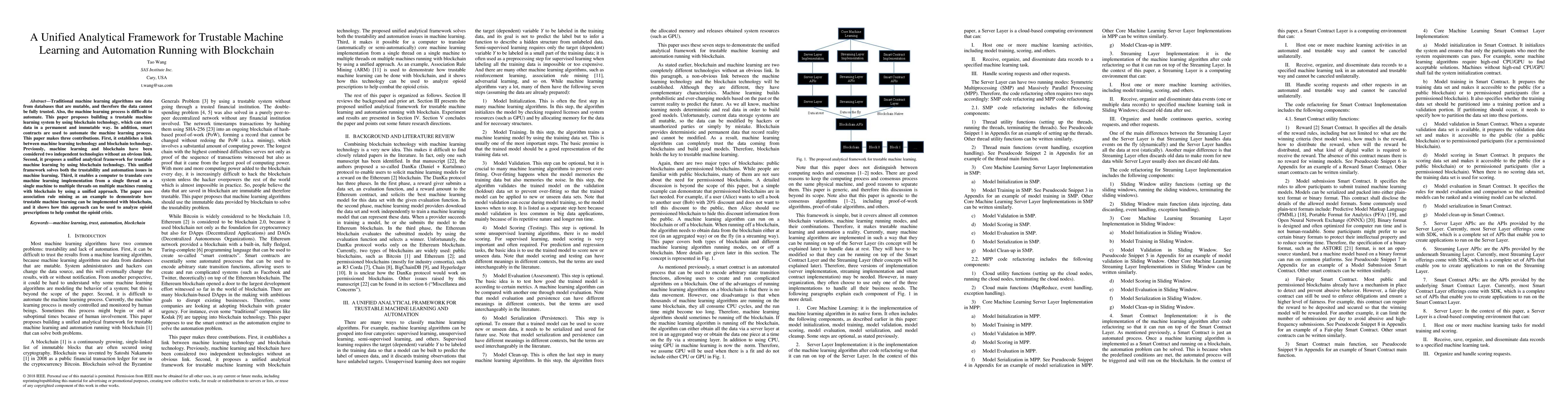 This paper proposes a unified analytical framework for trustable machine learning using blockchain technology to address data trust and automation issues. It establishes a connection between machine learning and blockchain, enabling trustable and automated machine learning processes through smart contracts.