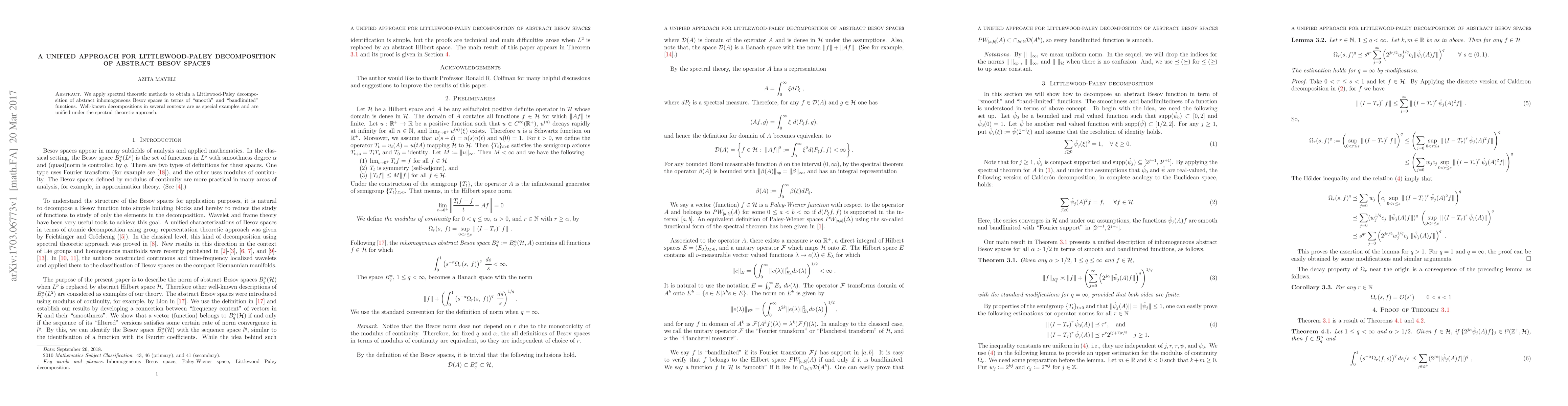Summary: This paper uses spectral theory to unify Littlewood-Paley decompositions in abstract inhomogeneous Besov spaces, presenting smooth and bandlimited function decompositions, and showing how well-known decompositions fit within this framework.