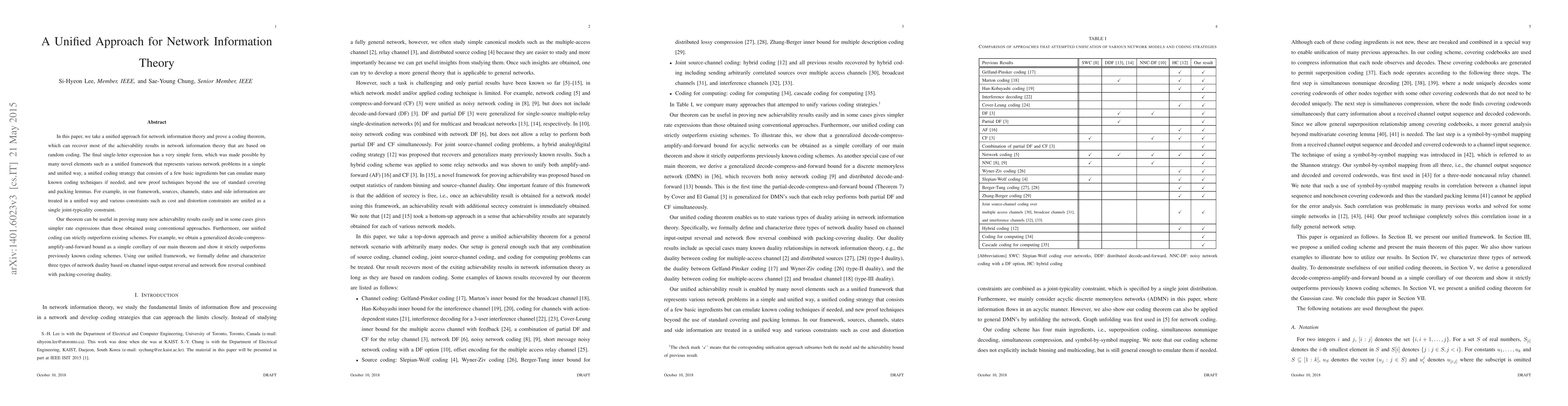 This paper presents a unified approach to network information theory, proving a coding theorem that simplifies and generalizes existing achievability results. The unified framework and coding strategy offer simpler rate expressions and outperform conventional methods, exemplified by a generalized decode-compress-amplify-and-forward bound.