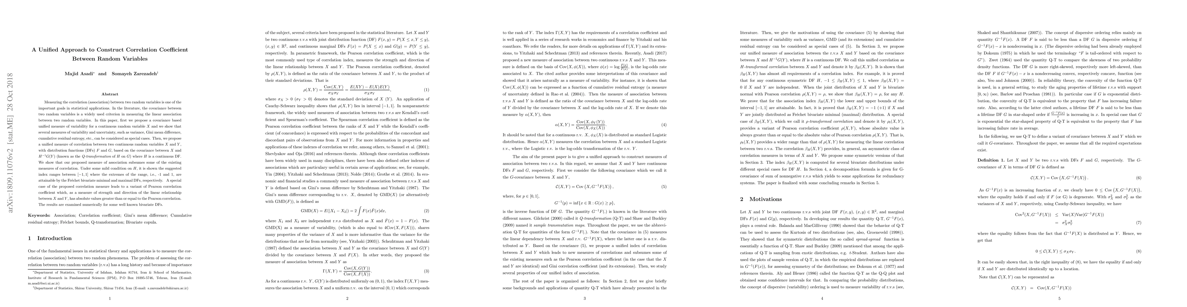 Measuring the correlation (association) between two random variables is one of the important goals in statistical applications. In the literature, the covariance between two random variables is a widely used criterion in measuring the linear association between two random variables. In this paper, first we propose a covariance based unified measure of variability for a continuous random variable X and we show that several measures of variability and uncertainty, such as variance, Gini mean difference, cumulative residual entropy, etc., can be considered as special cases. Then, we propose a unified measure of correlation between two continuous random variables X and Y, with distribution functions (DFs) F and G, based on the covariance between X and H^{-1}G(Y) (known as the Q-transformation of H on G) where H is a continuous DF. We show that our proposed measure of association subsumes some of the existing measures of correlation. Under some mild condition on H, it is shown the suggested index ranges between [-1,1] where the extremes of the range, i.e., -1 and 1, are attainable by the Frechet bivariate minimal and maximal DFs, respectively. A special case of the proposed correlation measure leads to a variant of Pearson correlation coefficient which, as a measure of strength and direction of the linear relationship between X and Y, has absolute values greater than or equal to the Pearson correlation. The results are examined numerically for some well known bivariate DFs.