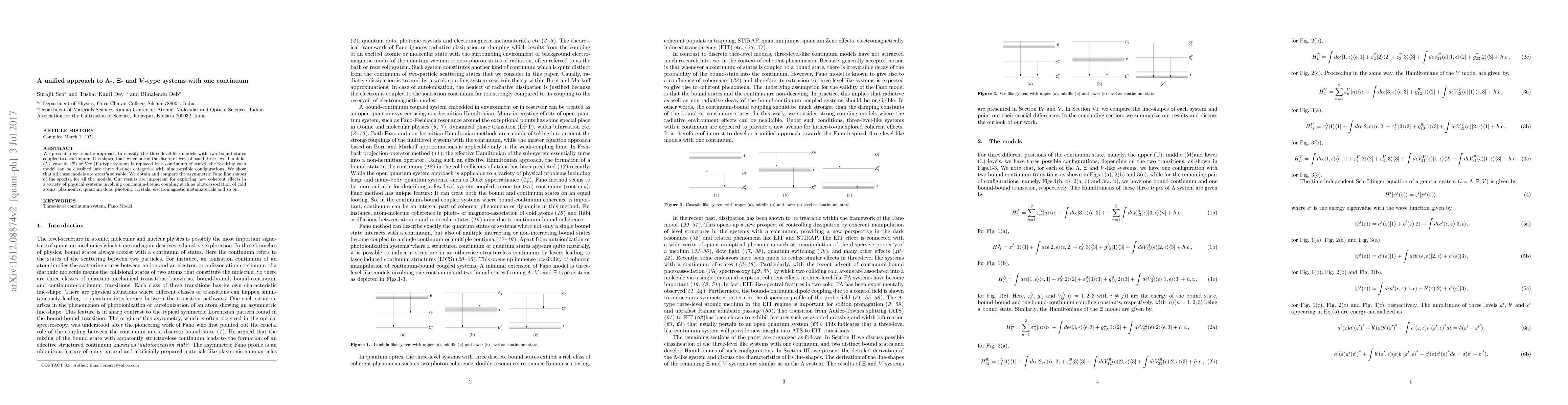 The paper introduces a unified method to categorize three-level atom models with one continuum, classifying them into nine configurations. It demonstrates that these models, applicable to systems like photoassociation of cold atoms and quantum dots, are exactly solvable, yielding asymmetric Fano line shapes in their spectra.