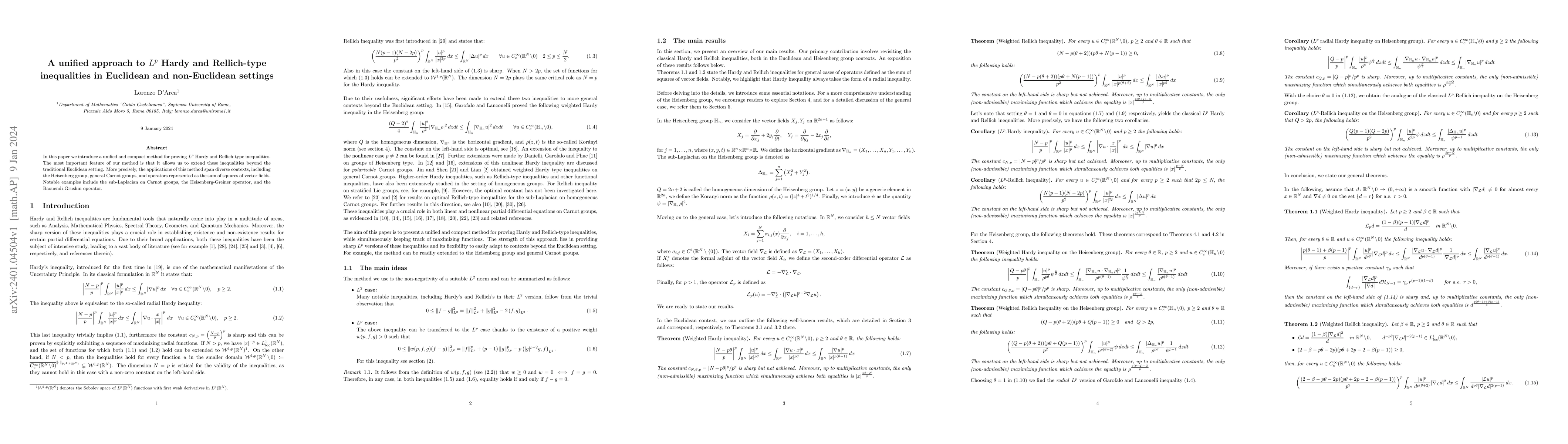 This paper presents a unified method for proving $L^p$ Hardy and Rellich-type inequalities, extending beyond traditional Euclidean settings to non-Euclidean contexts like the Heisenberg group, general Carnot groups, and operators involving sub-Laplacians. The method's versatility is demonstrated through applications to the sub-Laplacian, Heisenberg-Greiner operator, and Baouendi-Grushin operator.