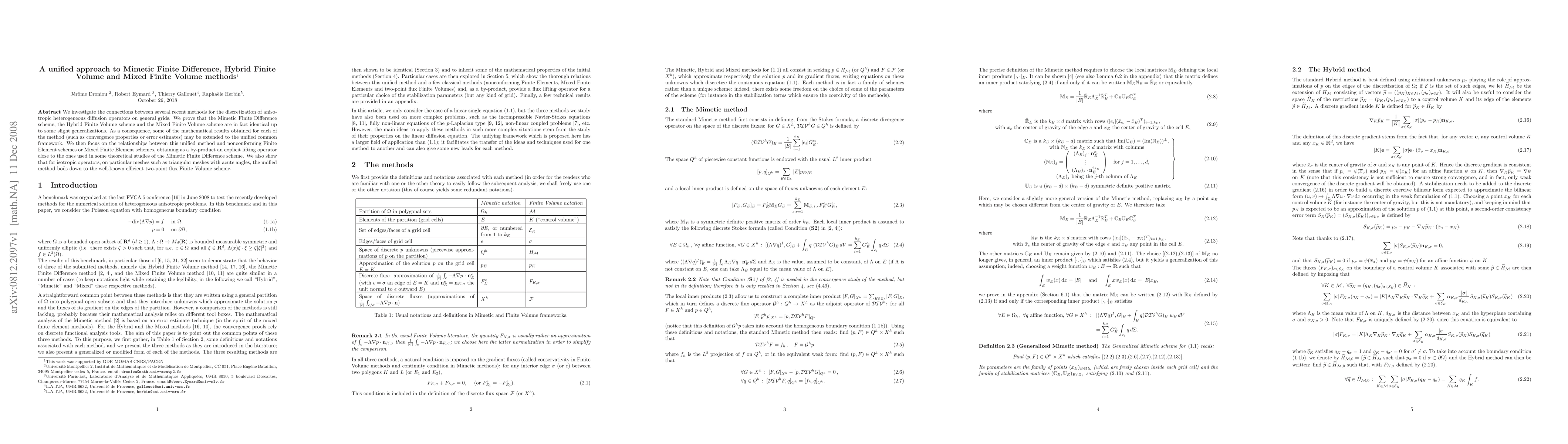This paper unifies Mimetic Finite Difference, Hybrid Finite Volume, and Mixed Finite Volume methods, proving their equivalence under slight generalizations. It extends mathematical results like convergence properties to a common framework and explores relationships with nonconforming Finite Element schemes, yielding an explicit lifting operator.