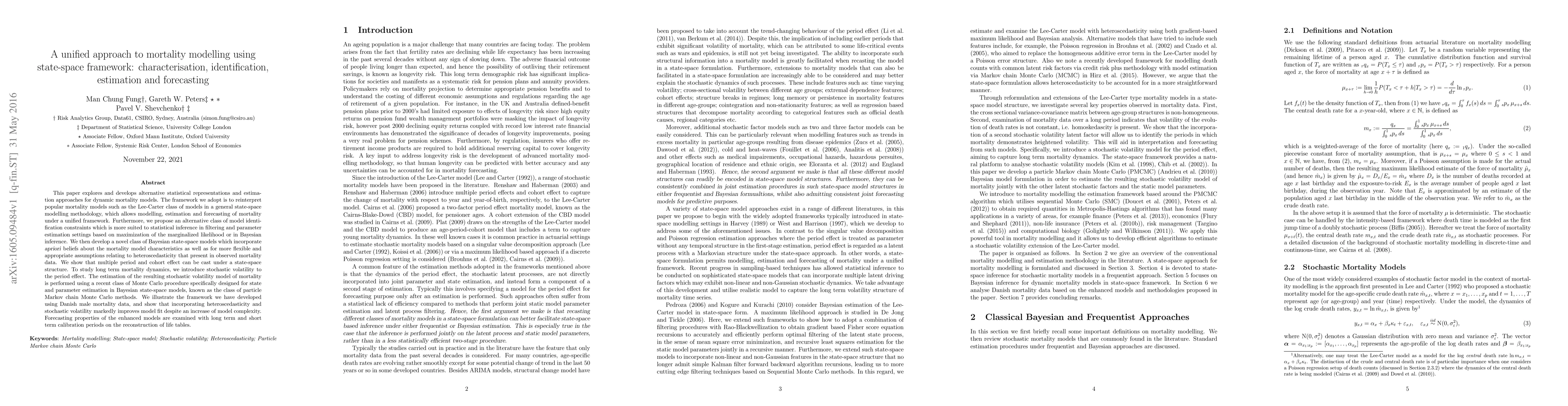This paper develops a unified state-space framework for dynamic mortality modelling, reinterpreting the Lee-Carter model and introducing Bayesian state-space models with stochastic volatility and heteroscedasticity. The proposed approach improves model fit and forecasting accuracy, demonstrated using Danish male mortality data.