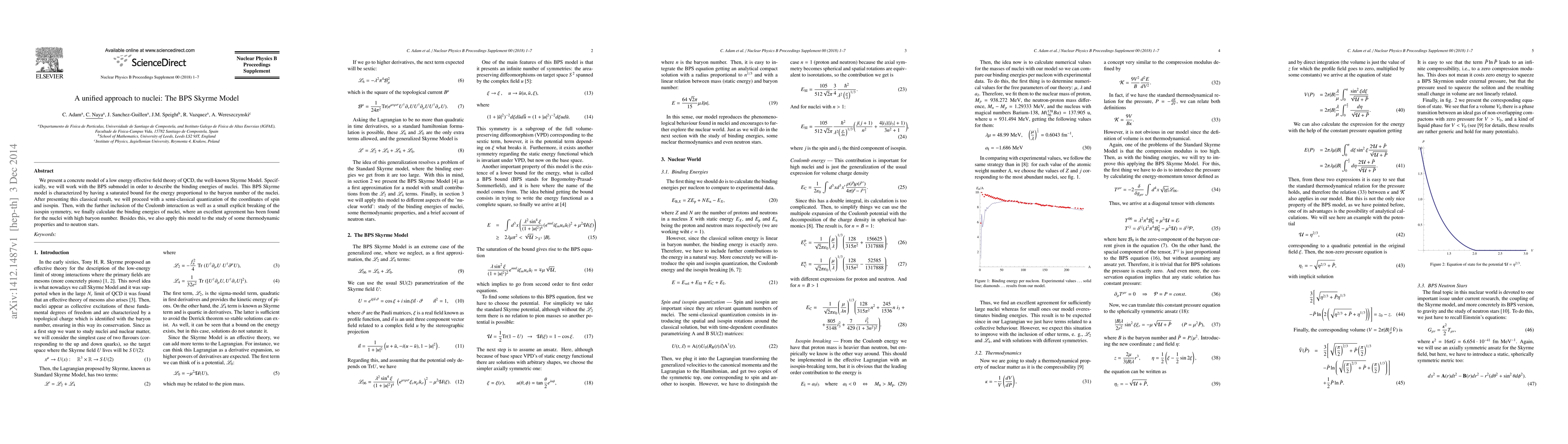 The paper introduces the BPS Skyrme Model as a low-energy effective field theory for QCD, achieving accurate predictions for binding energies of nuclei with high baryon numbers through semi-classical quantization and inclusion of Coulomb interaction. The model also extends to thermodynamic properties and neutron stars.