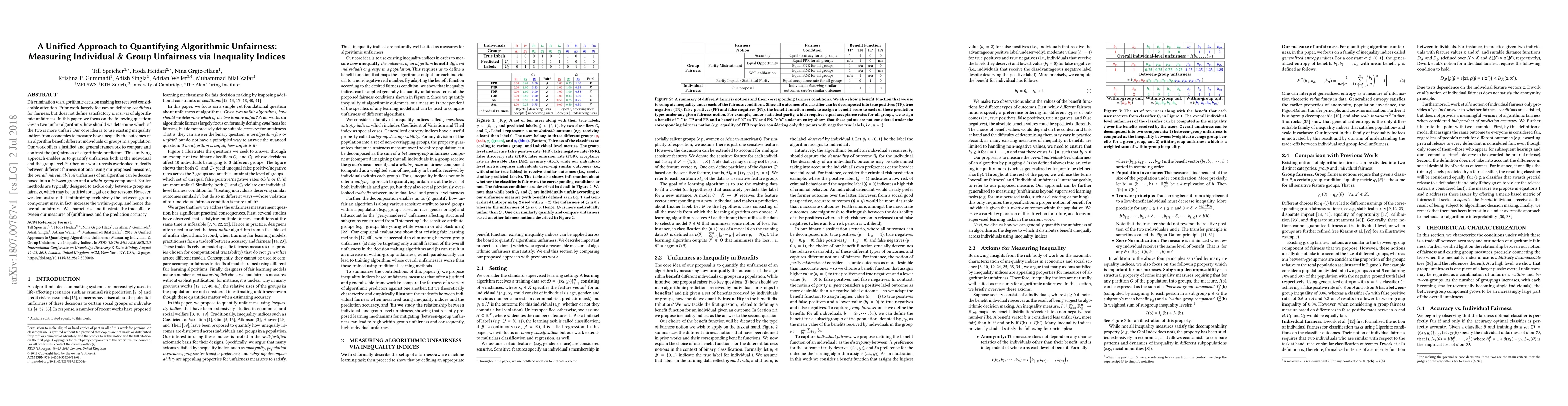 This paper proposes a unified framework using economic inequality indices to quantify algorithmic unfairness at both individual and group levels, revealing tradeoffs between different fairness notions and showing that minimizing between-group unfairness may increase within-group unfairness.