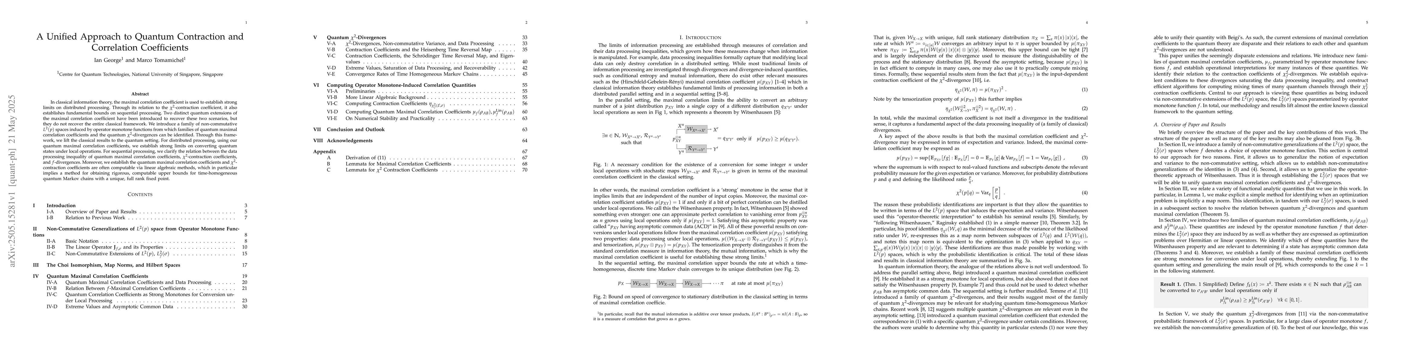 This research extends classical information theory results to the quantum domain, providing a unified framework for understanding and computing quantum correlations, with implications for quantum information processing and Markov chain analysis.