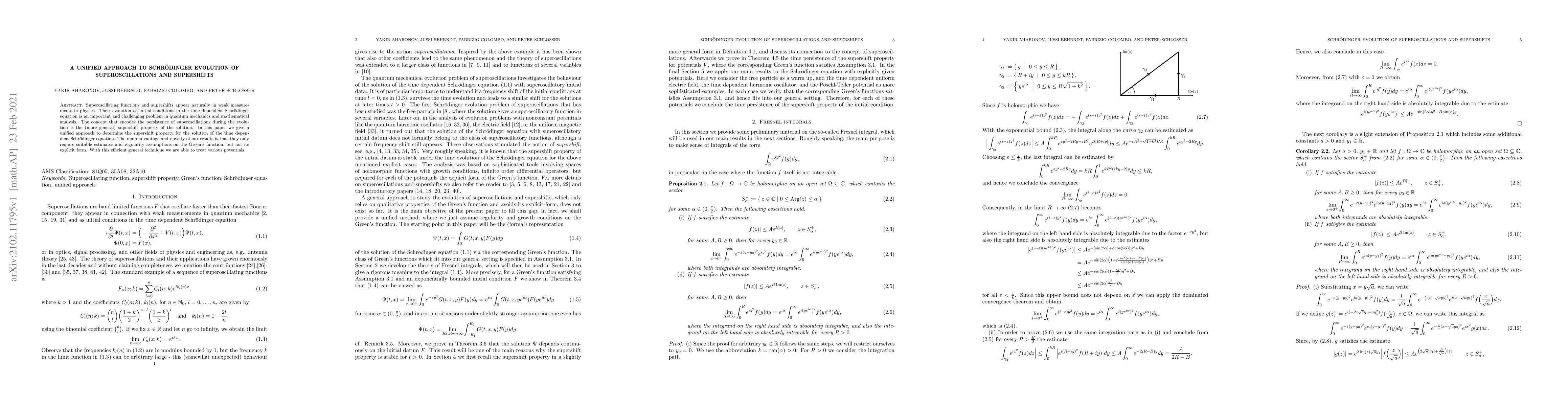 This paper presents a unified method for determining the evolution of superoscillating functions and supershifts in the time-dependent Schrödinger equation, requiring only estimates and regularity assumptions on the Green's function rather than its explicit form, thus enabling treatment of various potentials.