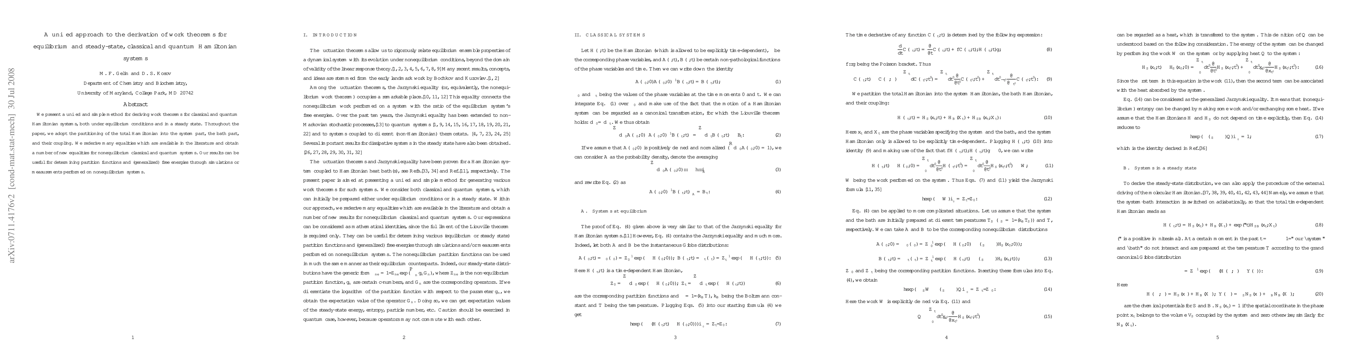 This paper presents a unified approach to deriving work theorems for classical and quantum systems in equilibrium and steady-state conditions. It provides new equalities for nonequilibrium systems and can be useful for simulating or measuring partition functions and free energies of nonequilibrium systems.