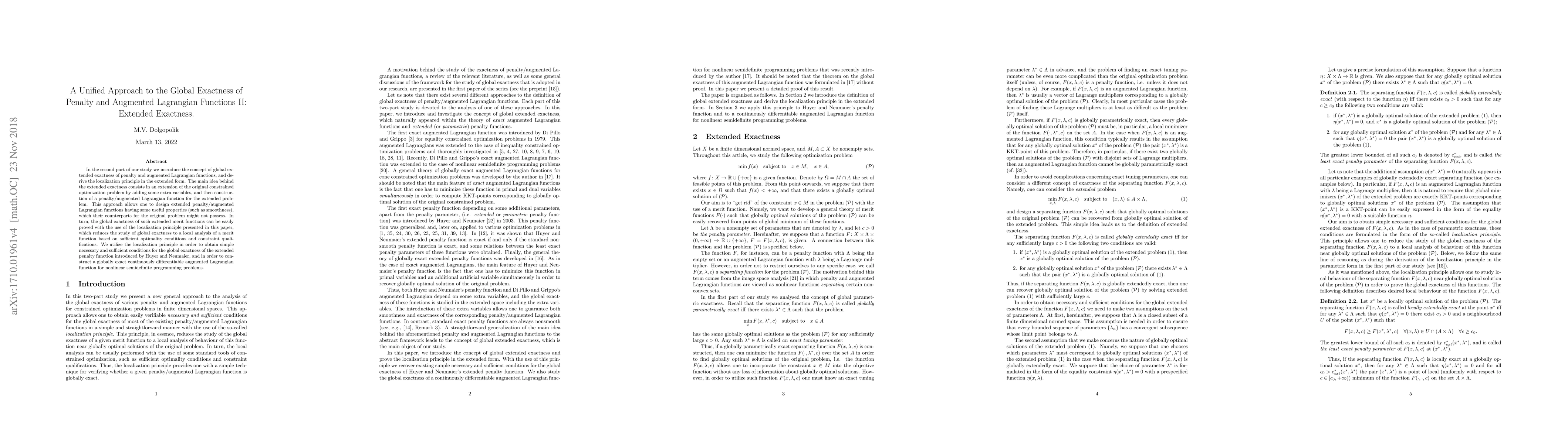 This paper extends the concept of global exactness for penalty and augmented Lagrangian functions by introducing the idea of global extended exactness through an optimization problem with extra variables. It presents a localization principle to simplify the proof of global exactness and constructs globally exact augmented Lagrangian functions for nonlinear semidefinite programming.