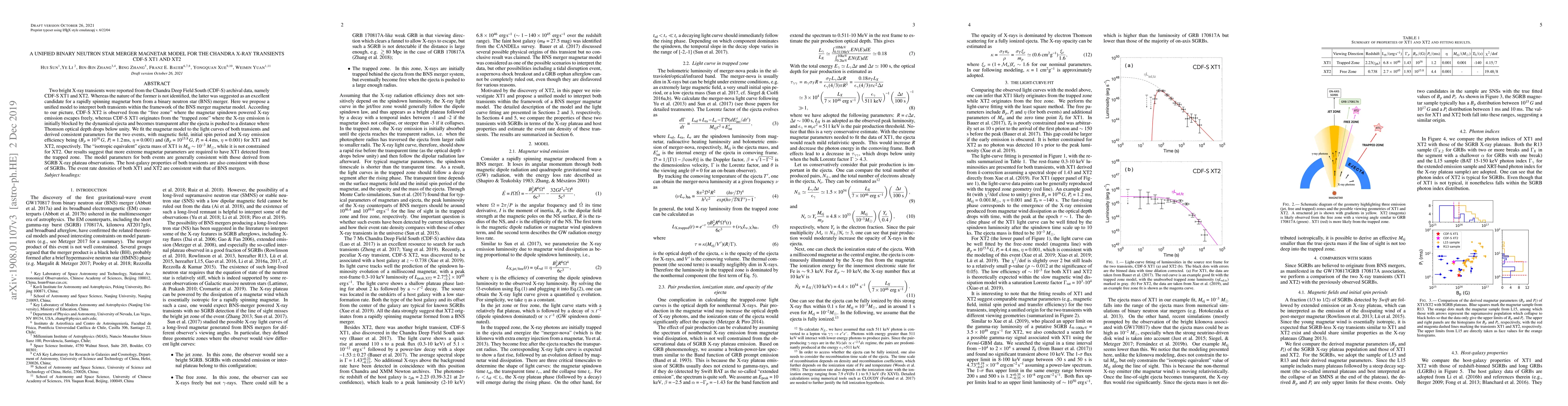 This paper proposes a unified binary neutron star merger magnetar model to interpret the X-ray transients CDF-S XT1 and XT2, suggesting XT2 is from the "free zone" and XT1 from the "trapped zone" where X-ray emission is initially blocked. The model fits yield consistent magnetar parameters for both events, supporting the BNS merger origin.