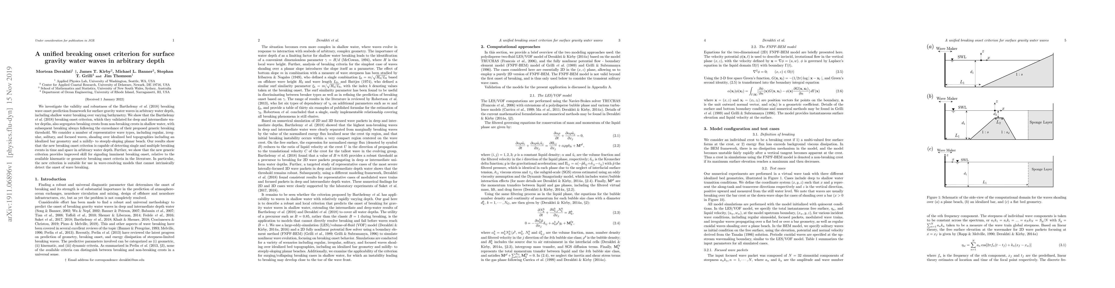 This paper validates the Barthelemy et al. (2018) breaking wave onset criterion across various water depths, demonstrating its effectiveness in detecting breaking events in shallow waters over different bathymetries. The criterion shows improved performance over existing methods and is suitable for use in wave-resolving models.