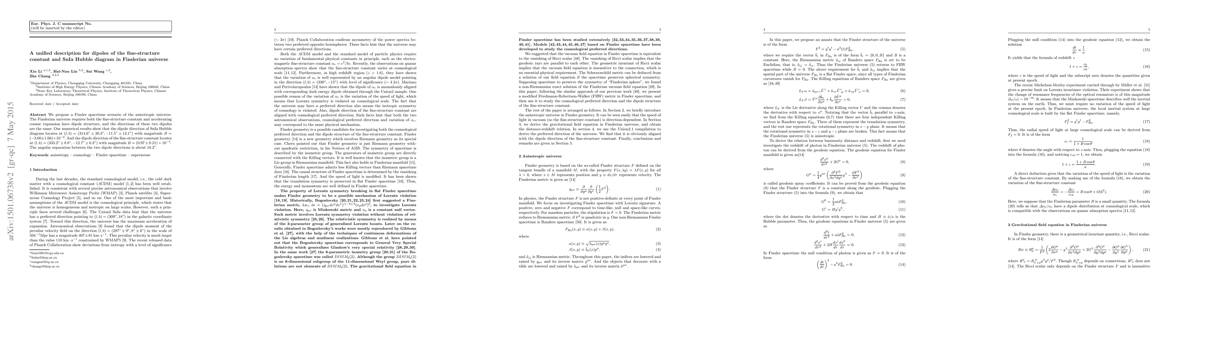 This paper proposes a Finsler spacetime model for an anisotropic universe where both the fine-structure constant and the SnIa Hubble diagram exhibit dipole structures. The study finds that the dipole directions of these two phenomena are nearly aligned, with an angular separation of about $18.2^\circ$.