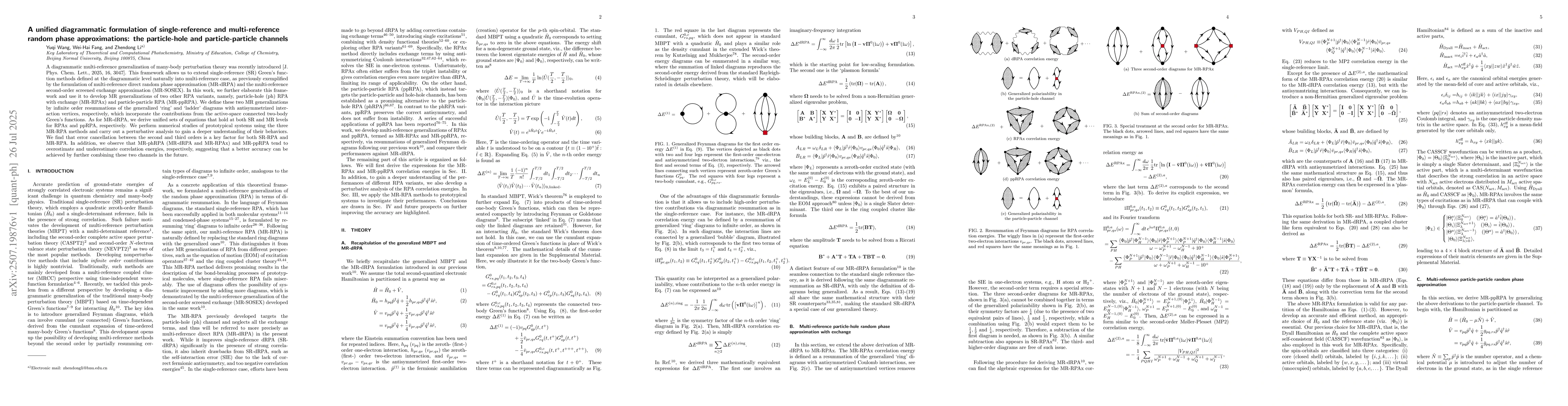 This research paper presents a unified diagrammatic formulation for extending single-reference Green's function methods into the multi-reference case, focusing on particle-hole and particle-particle channels. It introduces MR-RPAx and MR-ppRPA, deriving unified equations for SR and MR levels, and analyzes their performance on prototypical systems, revealing error cancellation as crucial and channel-specific over- and underestimation tendencies.