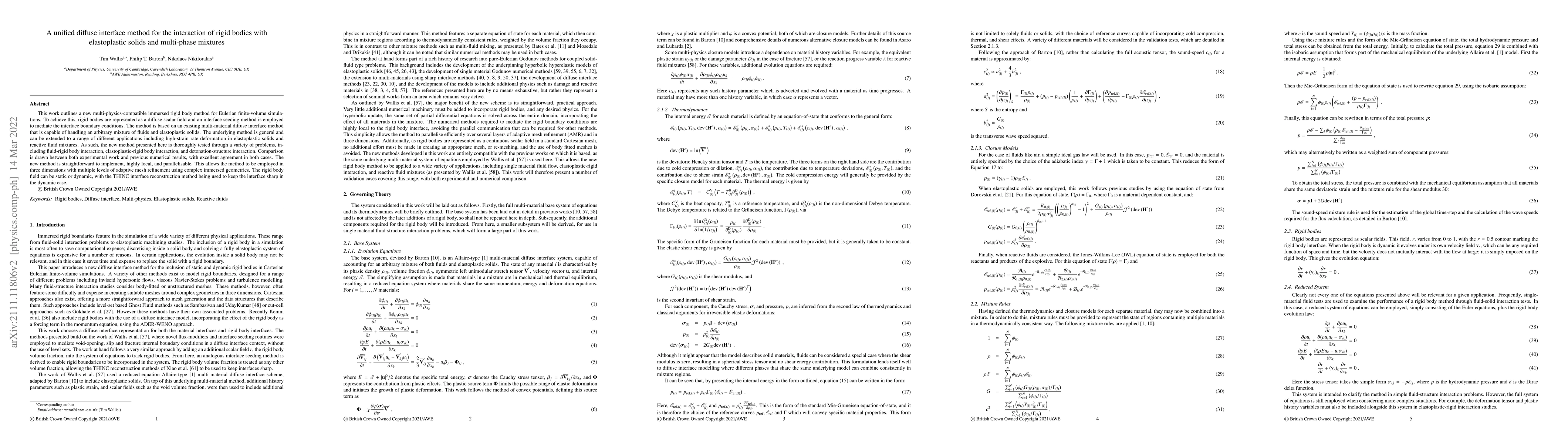 This work outlines a new multi-physics-compatible immersed rigid body method for Eulerian finite-volume simulations. To achieve this, rigid bodies are represented as a diffuse scalar field and an interface seeding method is employed to mediate the interface boundary conditions. The method is based on an existing multi-material diffuse interface method that is capable of handling an arbitrary mixture of fluids and elastoplastic solids. The underlying method is general and can be extended to a range of different applications including high-strain rate deformation in elastoplastic solids and reactive fluid mixtures. As such, the new method presented here is thoroughly tested through a variety of problems, including fluid-rigid body interaction, elastoplastic-rigid body interaction, and detonation-structure interaction. Comparison is drawn between both experimental work and previous numerical results, with excellent agreement in both cases. The new method is straightforward to implement, highly local, and parallelisable. This allows the method to be employed in three dimensions with multiple levels of adaptive mesh refinement using complex immersed geometries. The rigid body field can be static or dynamic, with the THINC interface reconstruction method being used to keep the interface sharp in the dynamic case.