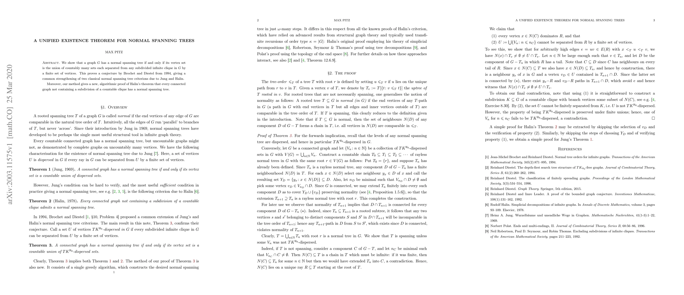 This research proves a common strengthening of two classical normal spanning tree criteria and provides a new, algorithmic proof of Halin's theorem.