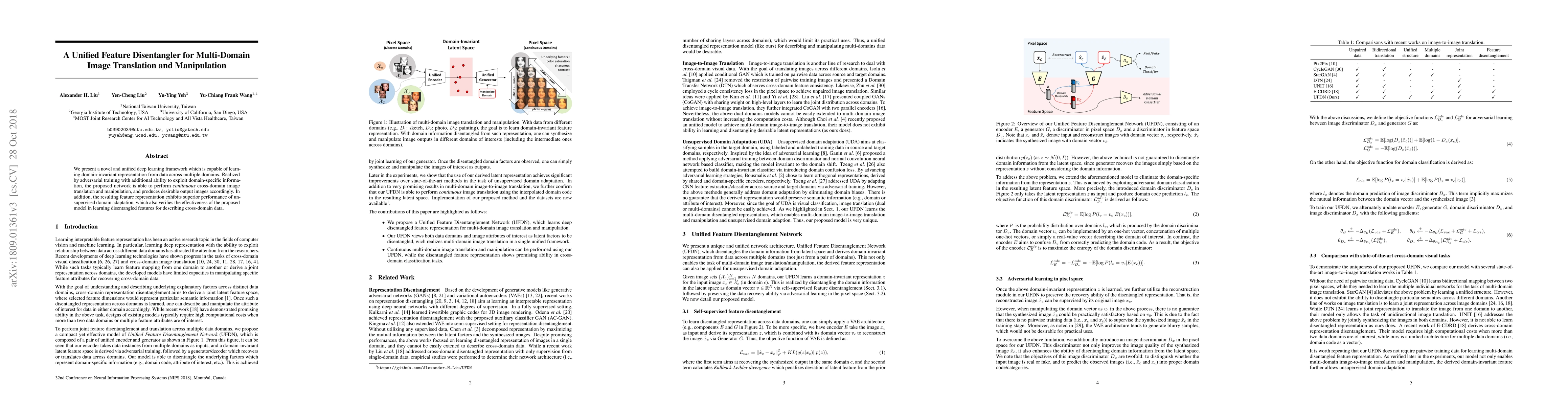 A new deep learning framework can translate images across multiple domains with high accuracy, producing desirable output images. It also learns disentangled features that excel in unsupervised domain adaptation.