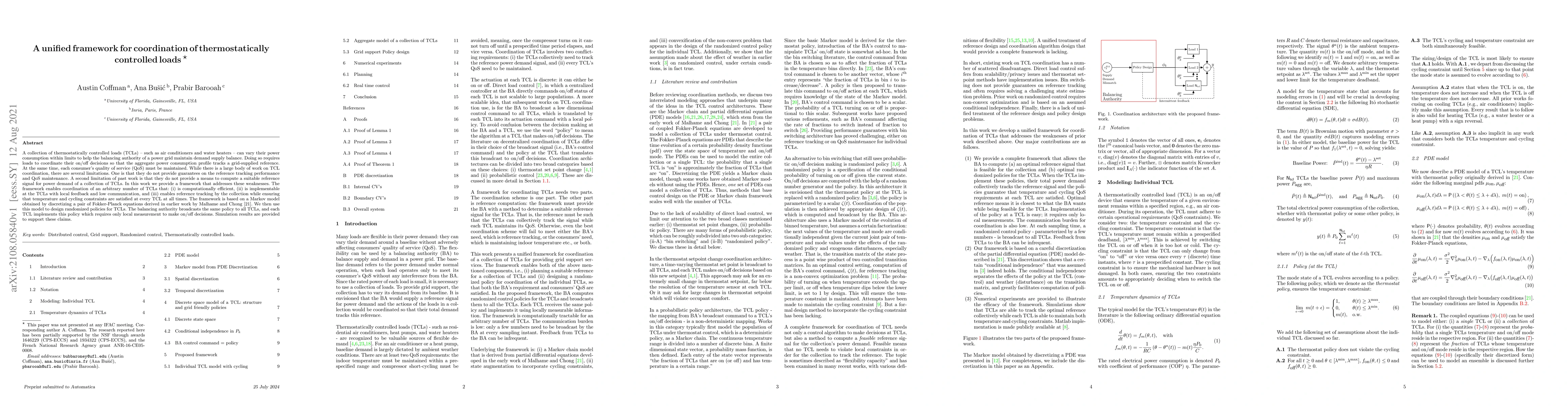 This paper presents a unified framework for coordinating thermostatically controlled loads (TCLs) to balance power grid demand with local feedback and minimal communication. The framework ensures efficient computation, reference tracking, and QoS maintenance while satisfying individual TCL constraints.
