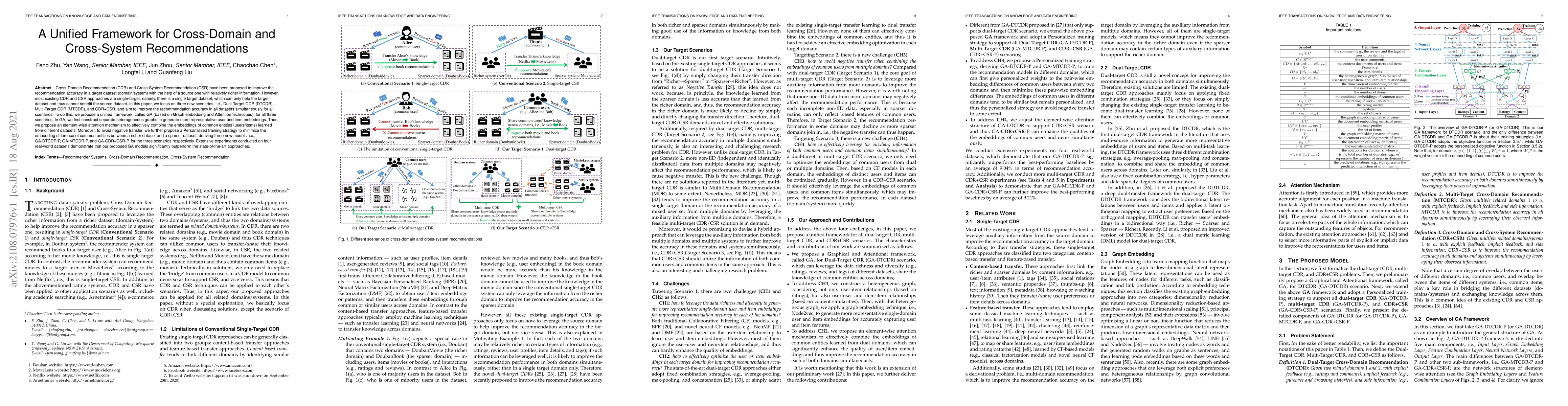 This paper proposes a unified framework, GA, based on graph embedding and attention techniques, to improve recommendation accuracy across multiple datasets in Dual-Target, Multi-Target Cross-Domain, and Cross-System Recommendation scenarios. The framework effectively combines embeddings from different datasets and employs a personalized training strategy to enhance performance across all involved datasets.