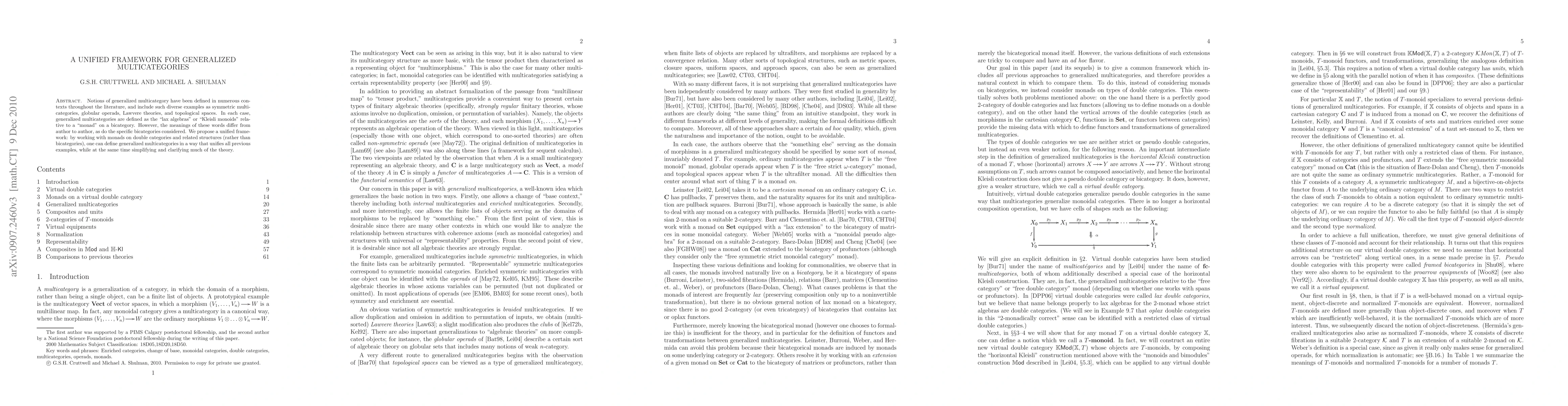 The paper proposes a unified framework for generalized multicategories by leveraging monads on double categories, aiming to unify diverse existing definitions and simplify theoretical complexities. This approach encompasses various examples like symmetric multicategories and topological spaces within a coherent structure.