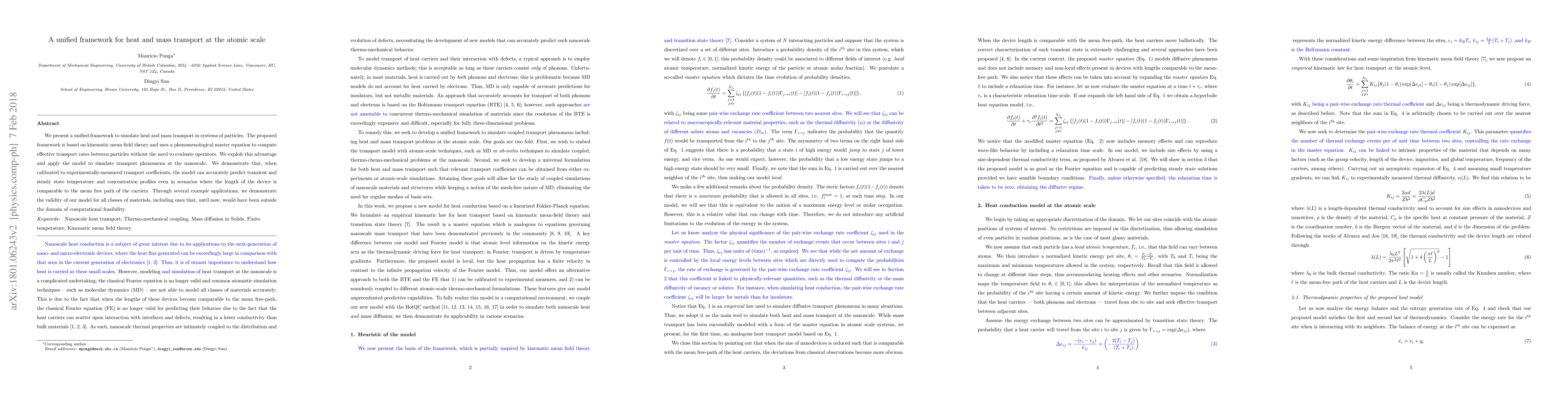 The research introduces a unified framework for simulating heat and mass transport in nanoscale systems using kinematic mean field theory and a master equation, accurately predicting temperature and concentration profiles across various materials, even where carrier mean free path is significant.
