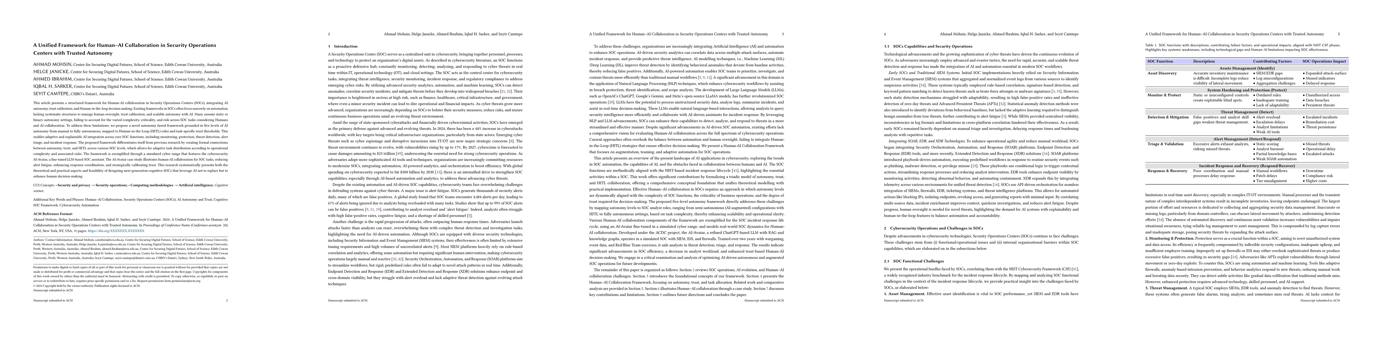 A new framework for human-AI collaboration in Security Operations Centers proposes a tiered autonomy system with five levels of AI autonomy to enhance trust calibration and adaptive task distribution, improving response coordination and reducing alert fatigue.