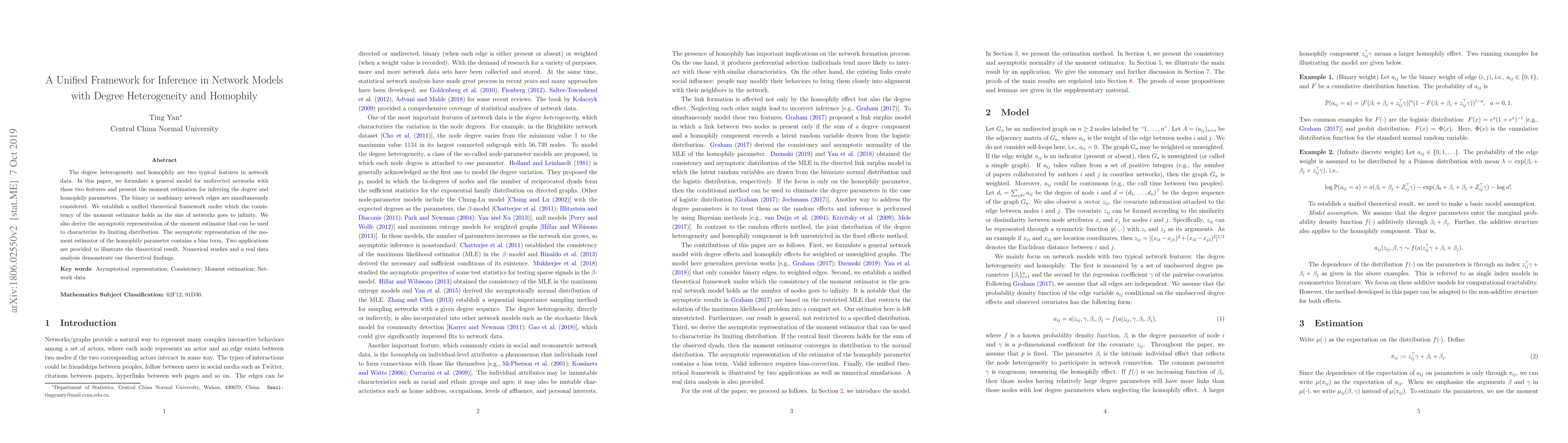 This paper proposes a unified framework for inferring parameters in network models that account for degree heterogeneity and homophily, using moment estimation. The theoretical framework ensures consistency and provides an asymptotic representation of the estimator, including a bias term for the homophily parameter, validated through numerical studies and real data analysis.