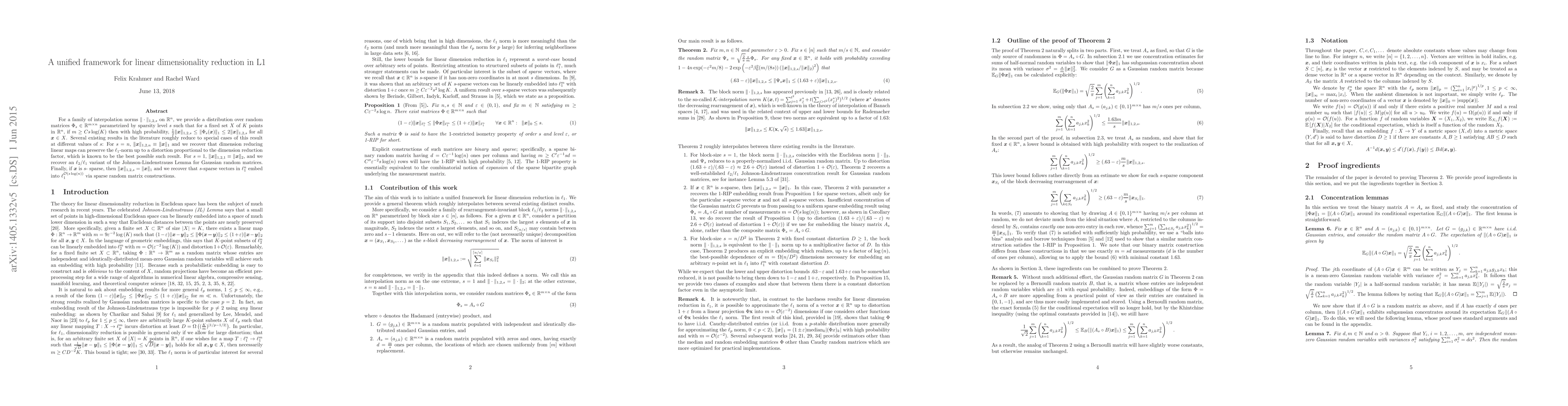 For a family of interpolation norms $\| \cdot \|_{1,2,s}$ on $\mathbb{R}^n$, we provide a distribution over random matrices $\Phi_s \in \mathbb{R}^{m \times n}$ parametrized by sparsity level $s$ such that for a fixed set $X$ of $K$ points in $\mathbb{R}^n$, if $m \geq C s \log(K)$ then with high probability, $\frac{1}{2} \| x \|_{1,2,s} \leq \| \Phi_s (x) \|_1 \leq 2 \| x\|_{1,2,s}$ for all $x\in X$. Several existing results in the literature reduce to special cases of this result at different values of $s$: for $s=n$, $\| x\|_{1,2,n} \equiv \| x \|_{1}$ and we recover that dimension reducing linear maps can preserve the $\ell_1$-norm up to a distortion proportional to the dimension reduction factor, which is known to be the best possible such result. For $s=1$, $\|x \|_{1,2,1} \equiv \| x \|_{2}$, and we recover an $\ell_2 / \ell_1$ variant of the Johnson-Lindenstrauss Lemma for Gaussian random matrices. Finally, if $x$ is $s$-sparse, then $\| x \|_{1,2,s} = \| x \|_1$ and we recover that $s$-sparse vectors in $\ell_1^n$ embed into $\ell_1^{\mathcal{O}(s \log(n))}$ via sparse random matrix constructions.