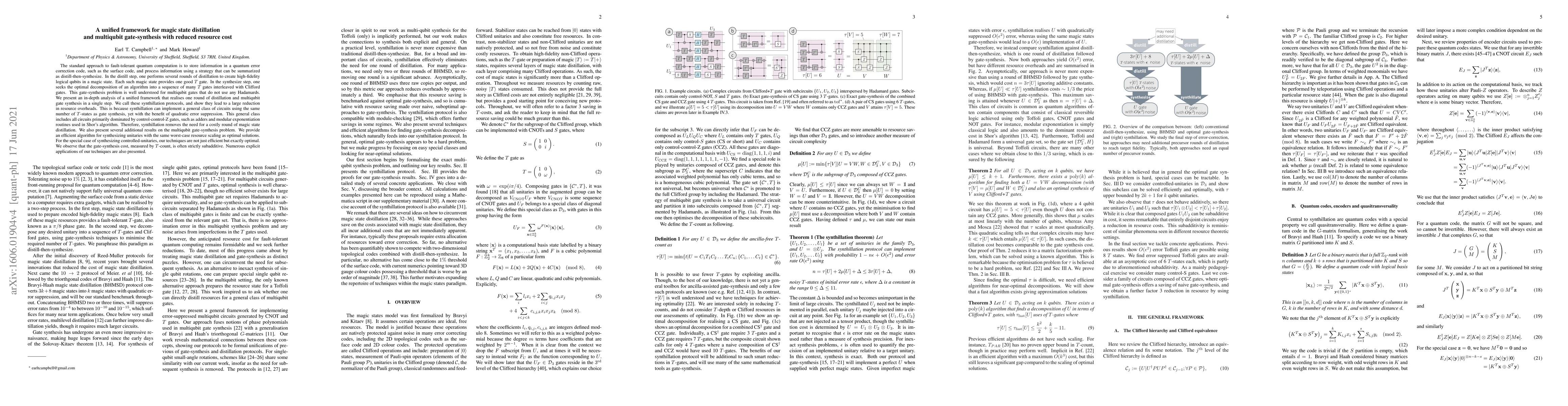 The standard approach to fault-tolerant quantum computation is to store information in a quantum error correction code, such as the surface code, and process information using a strategy that can be summarized as distill-then-synthesize. In the distill step, one performs several rounds of distillation to create high-fidelity logical qubits in a magic state. Each such magic state provides one good T gate. In the synthesize step, one seeks the optimal decomposition of an algorithm into a sequence of many T gates interleaved with Clifford gates. This gate-synthesis problem is well understood for multiqubit gates that do not use any Hadamards. We present an in-depth analysis of a unified framework that realises one round of distillation and multiqubit gate synthesis in a single step. We call these synthillation protocols, and show they lead to a large reduction in resource overheads. This is because synthillation can implement a general class of circuits using the same number of T-states as gate synthesis, yet with the benefit of quadratic error suppression. This general class includes all circuits primarily dominated by control-control-Z gates, such as adders and modular exponentiation routines used in Shor's algorithm. Therefore, synthillation removes the need for a costly round of magic state distillation. We also present several additional results on the multiqubit gate-synthesis problem. We provide an efficient algorithm for synthesizing unitaries with the same worst-case resource scaling as optimal solutions. For the special case of synthesizing controlled-unitaries, our techniques are not just efficient but exactly optimal. We observe that the gate-synthesis cost, measured by T-count, is often strictly subadditive. Numerous explicit applications of our techniques are also presented.