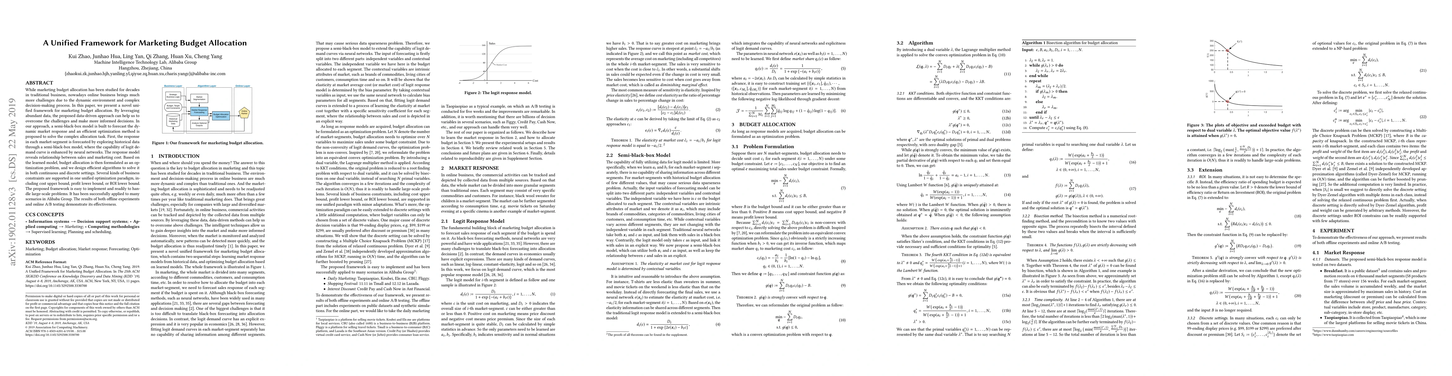 A new framework for marketing budget allocation is presented, using data-driven approaches to forecast market response and optimize budget allocation in a dynamic online environment.