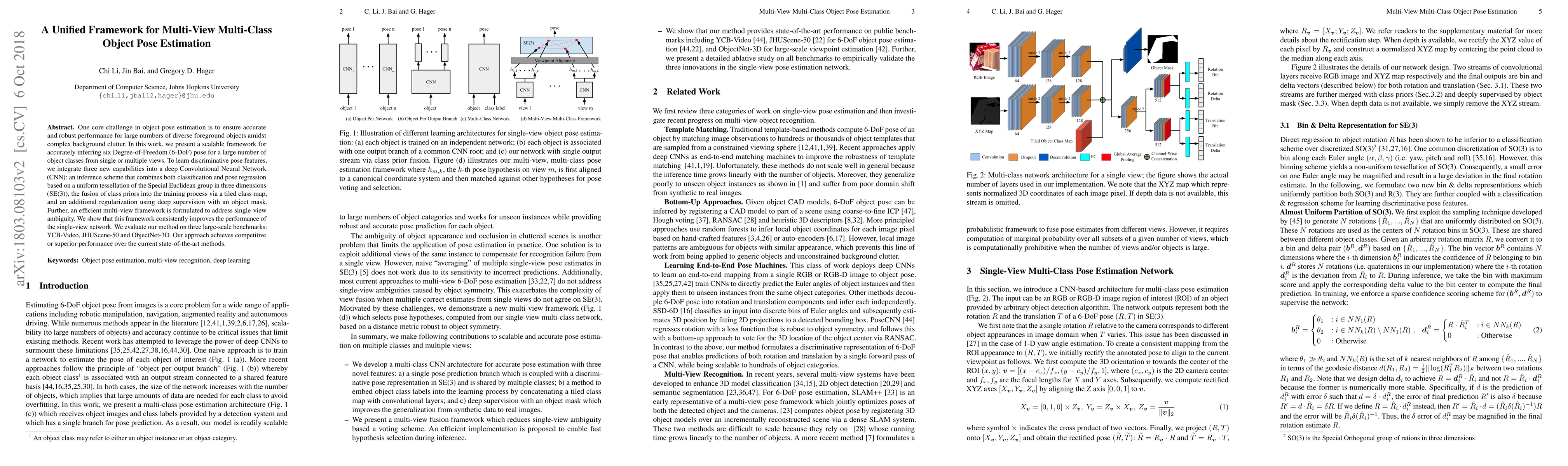 One core challenge in object pose estimation is to ensure accurate and robust performance for large numbers of diverse foreground objects amidst complex background clutter. In this work, we present a scalable framework for accurately inferring six Degree-of-Freedom (6-DoF) pose for a large number of object classes from single or multiple views. To learn discriminative pose features, we integrate three new capabilities into a deep Convolutional Neural Network (CNN): an inference scheme that combines both classification and pose regression based on a uniform tessellation of the Special Euclidean group in three dimensions (SE(3)), the fusion of class priors into the training process via a tiled class map, and an additional regularization using deep supervision with an object mask. Further, an efficient multi-view framework is formulated to address single-view ambiguity. We show that this framework consistently improves the performance of the single-view network. We evaluate our method on three large-scale benchmarks: YCB-Video, JHUScene-50 and ObjectNet-3D. Our approach achieves competitive or superior performance over the current state-of-the-art methods.