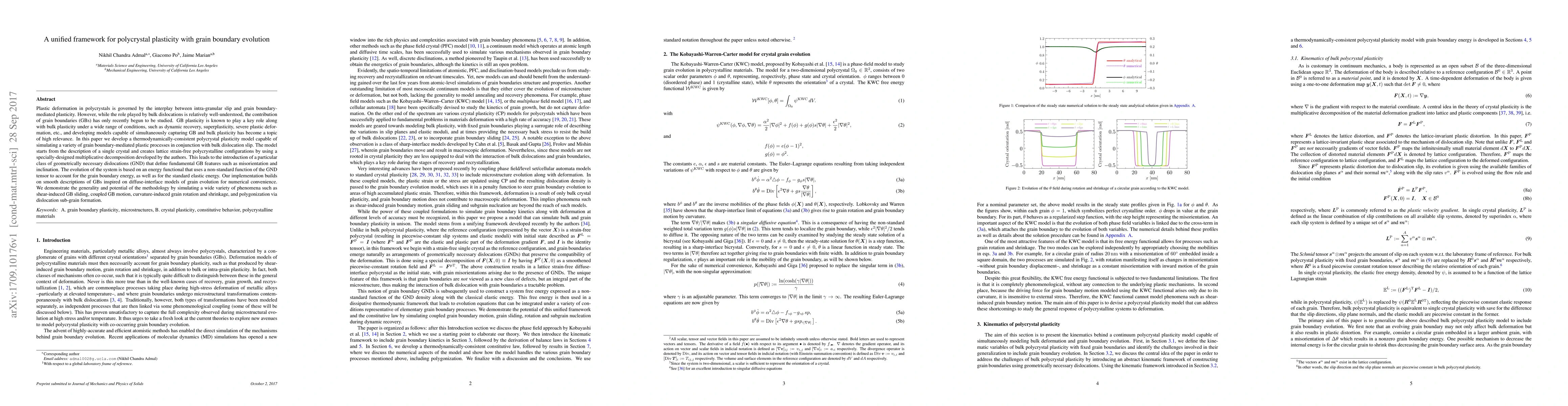 This paper presents a thermodynamically-consistent polycrystal plasticity model that integrates grain boundary-mediated plasticity with bulk dislocation slip. The model employs a multiplicative decomposition to create lattice strain-free polycrystalline configurations, introducing geometrically necessary dislocations to define grain boundary features, and simulates various phenomena like shear-induced GB sliding and polygonization.