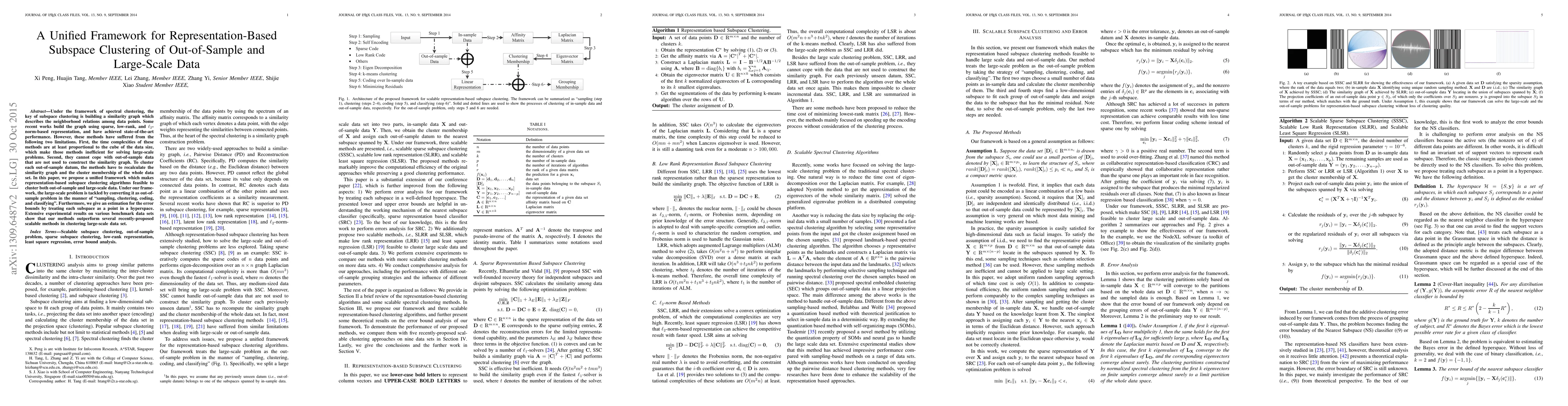 This paper proposes a unified framework for efficient representation-based subspace clustering of large-scale and out-of-sample data. The framework addresses the inefficiencies of existing methods by converting large-scale problems into manageable out-of-sample problems through "sampling, clustering, coding, and classifying," and demonstrates superior performance on benchmark datasets.