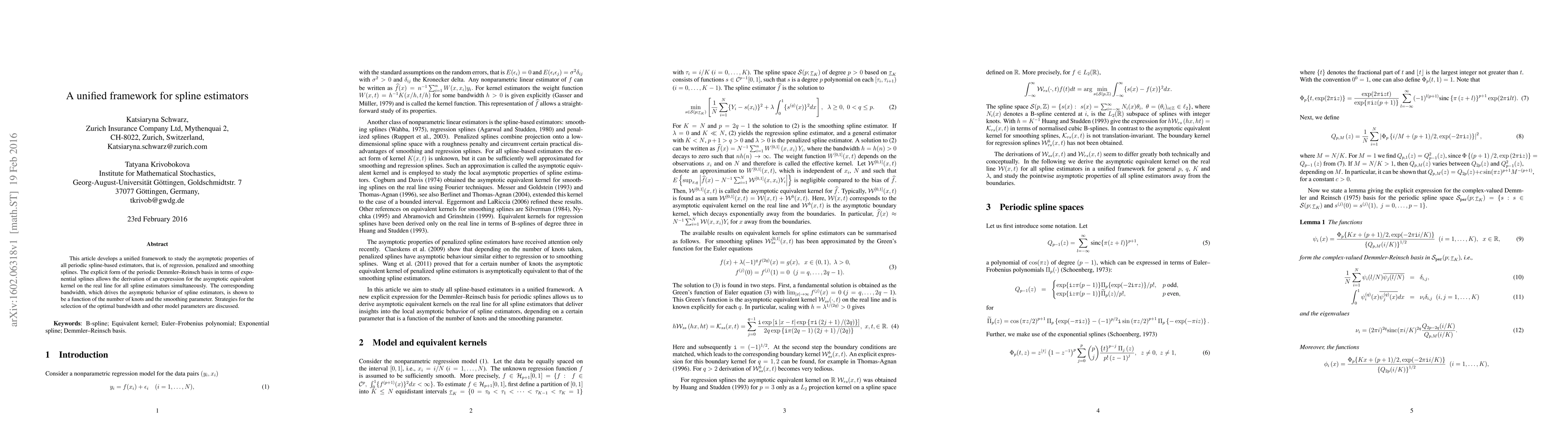 This paper develops a unified framework for studying the asymptotic properties of various spline-based estimators, including regression, penalized, and smoothing splines. It provides insights into the optimal bandwidth selection and model parameter tuning.
