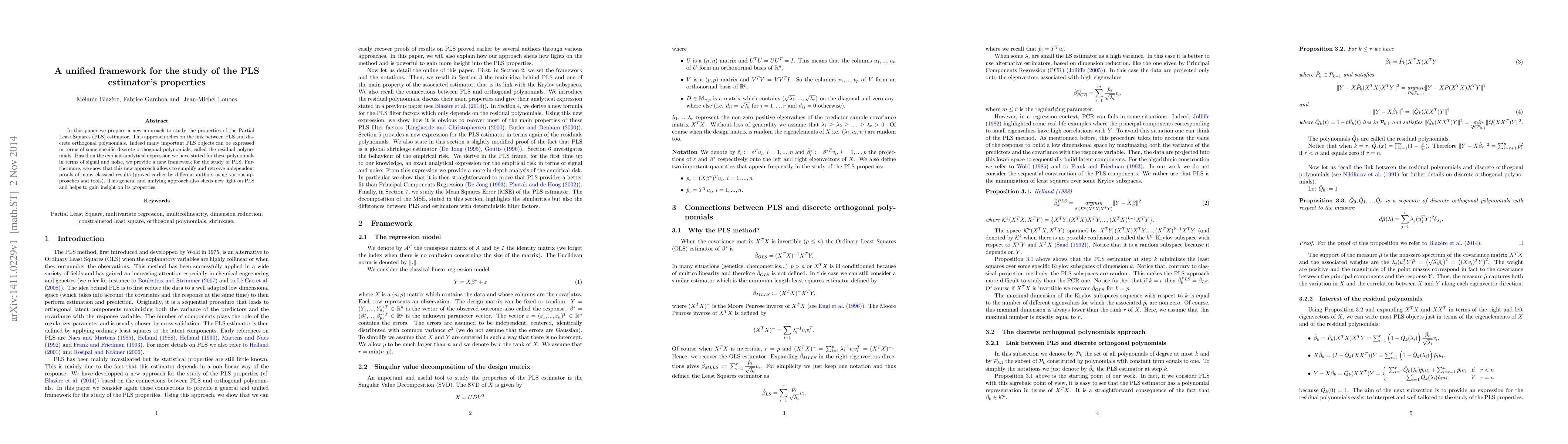 This paper proposes a unified framework for studying the Partial Least Squares (PLS) estimator by linking it to discrete orthogonal polynomials, specifically the residual polynomials. This new analytical approach simplifies and retrieves independent proofs of classical PLS results, offering deeper insights into its properties.