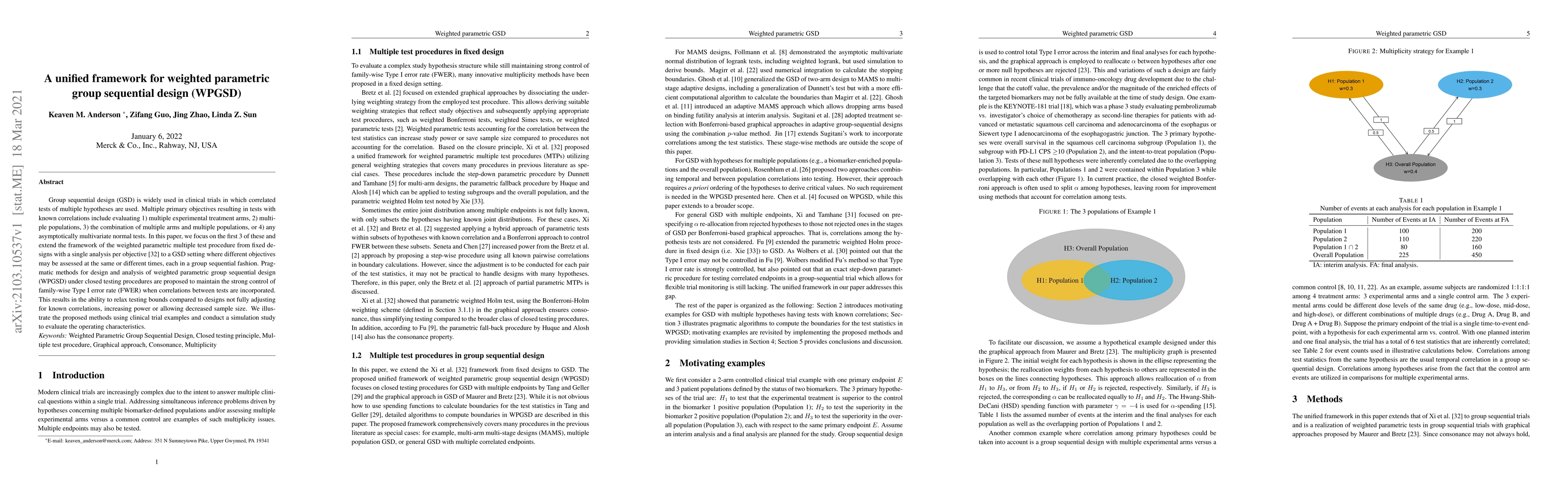 This paper presents a unified framework for weighted parametric group sequential designs (WPGSD) to evaluate multiple correlated hypotheses in clinical trials. It proposes pragmatic methods to maintain strong control of the familywise Type I error rate while adjusting for correlations, potentially increasing power or reducing sample size.